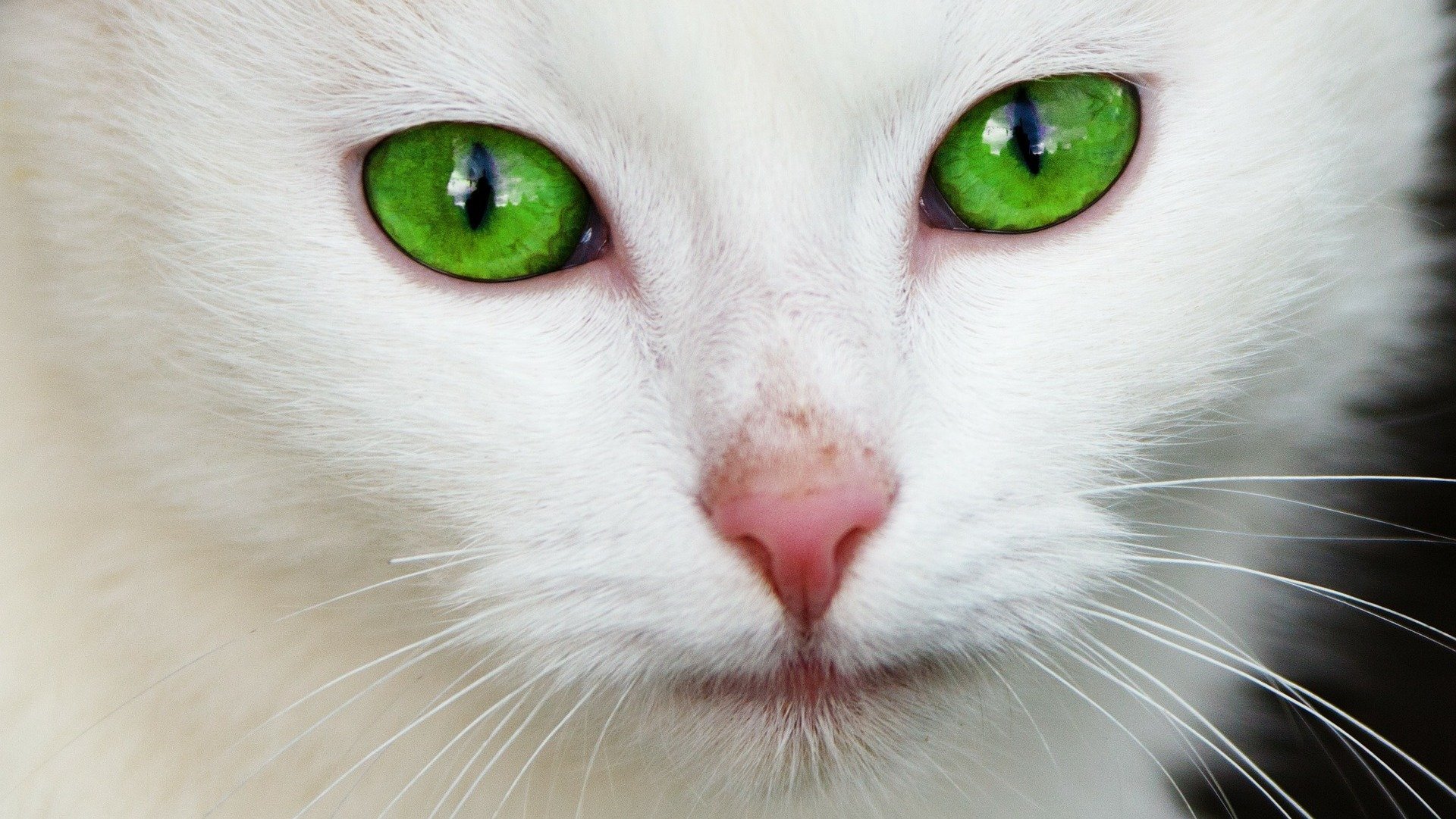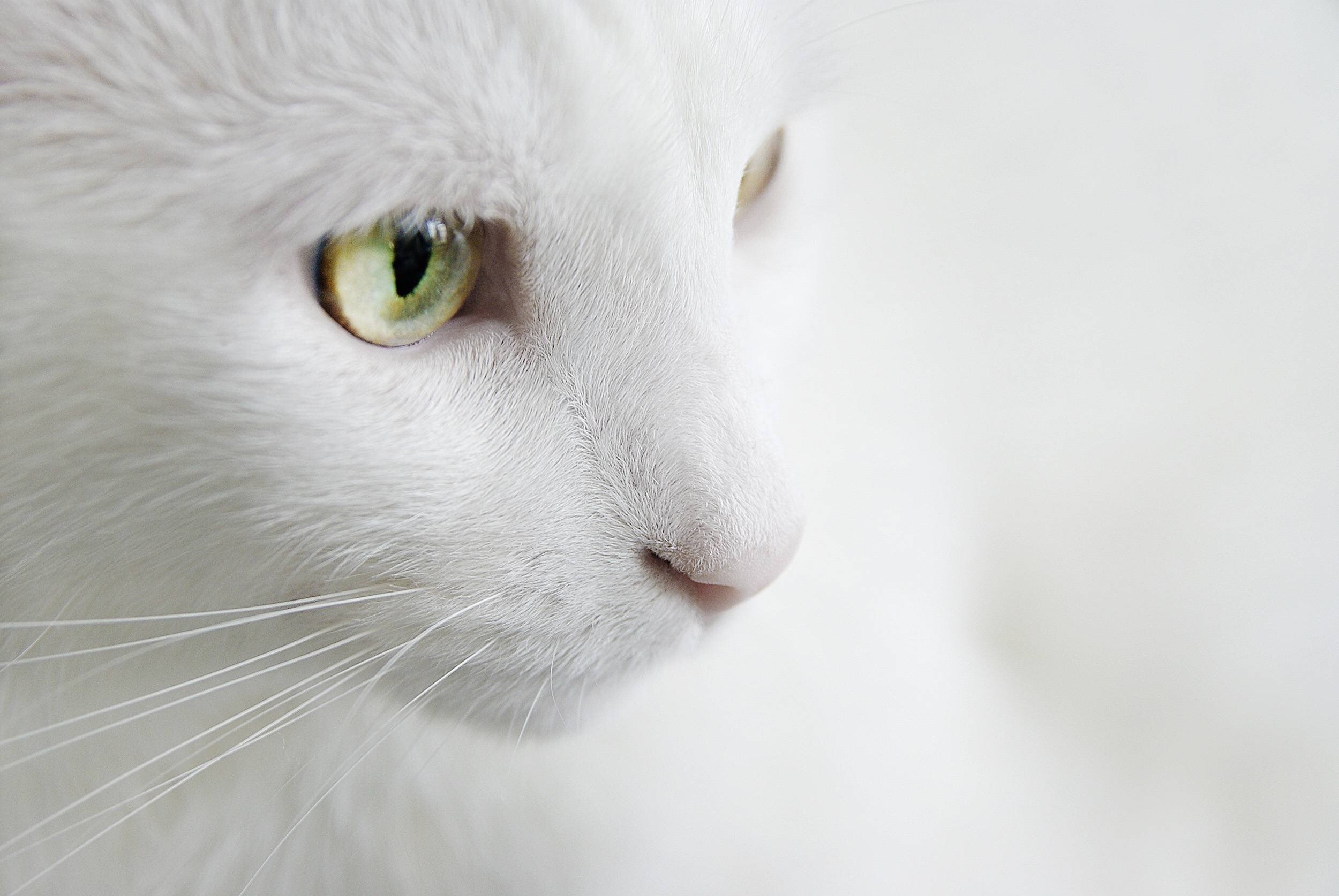 Белый кот с зелеными глазами