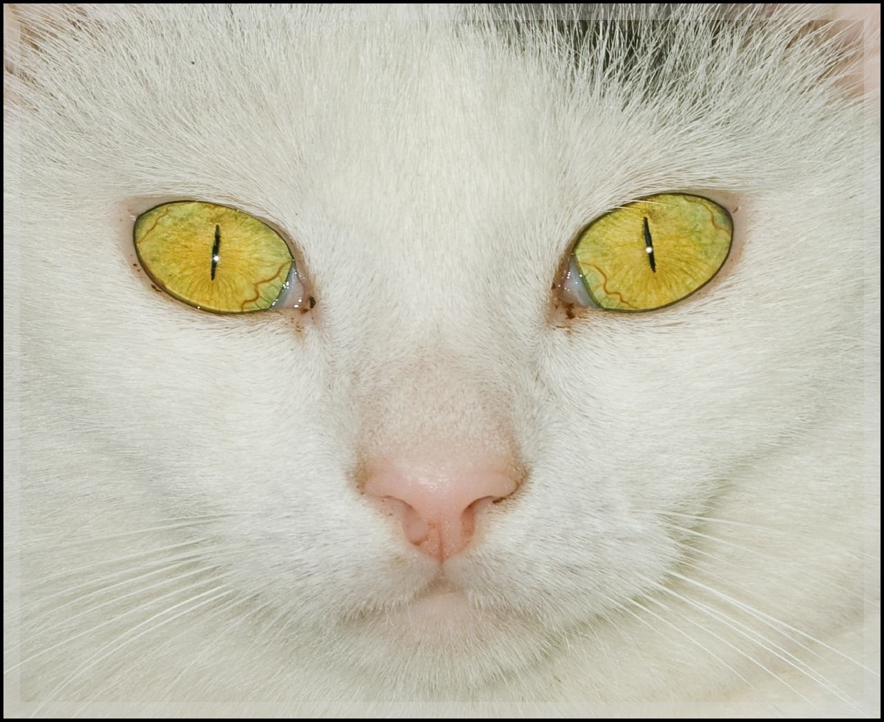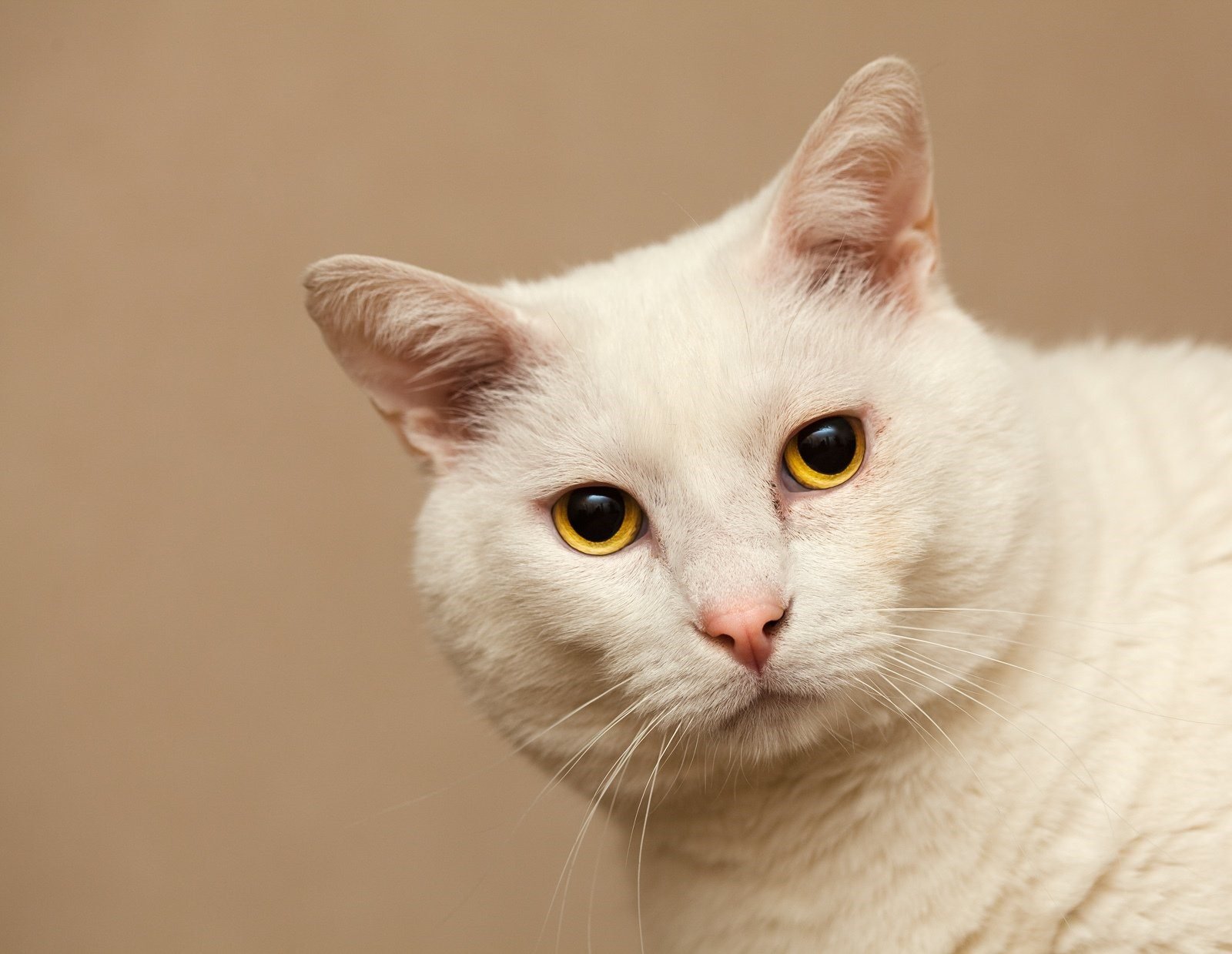 Белая кошка с желтыми глазами