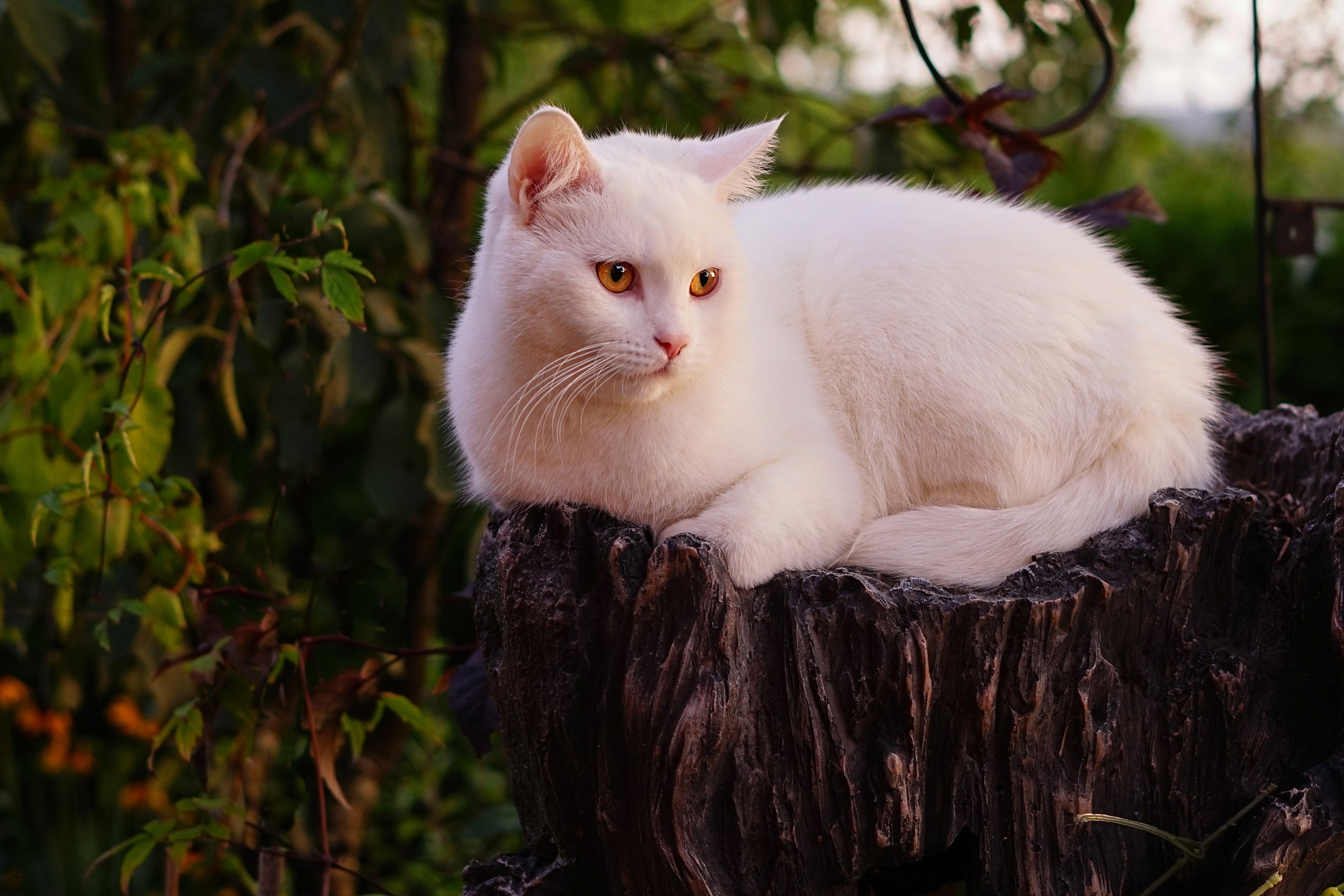 Белая кошка с янтарными глазами