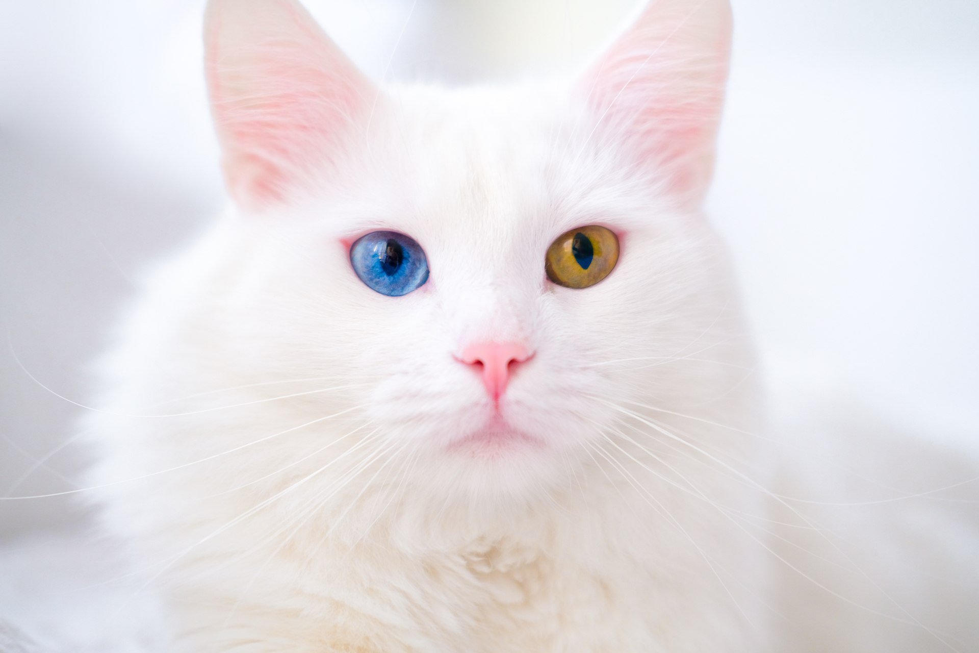 Гетерохромия у белой кошки