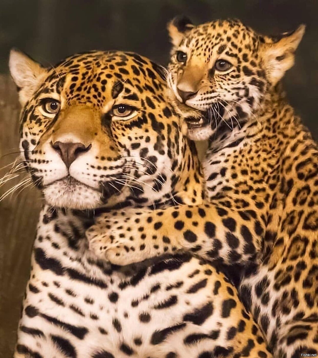 Черная пантера Ягуар и детеныш