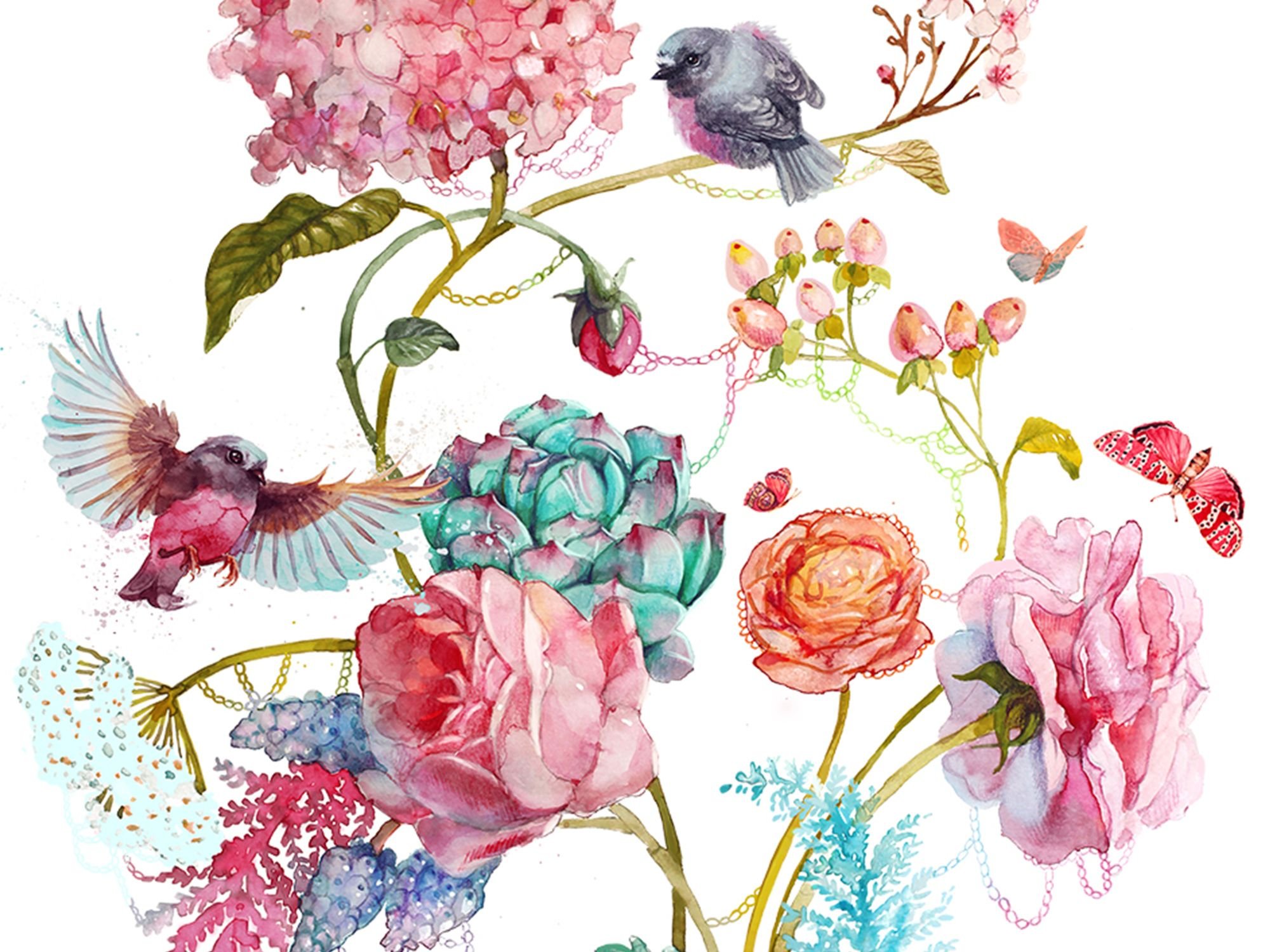 Акварельные птицы с цветами