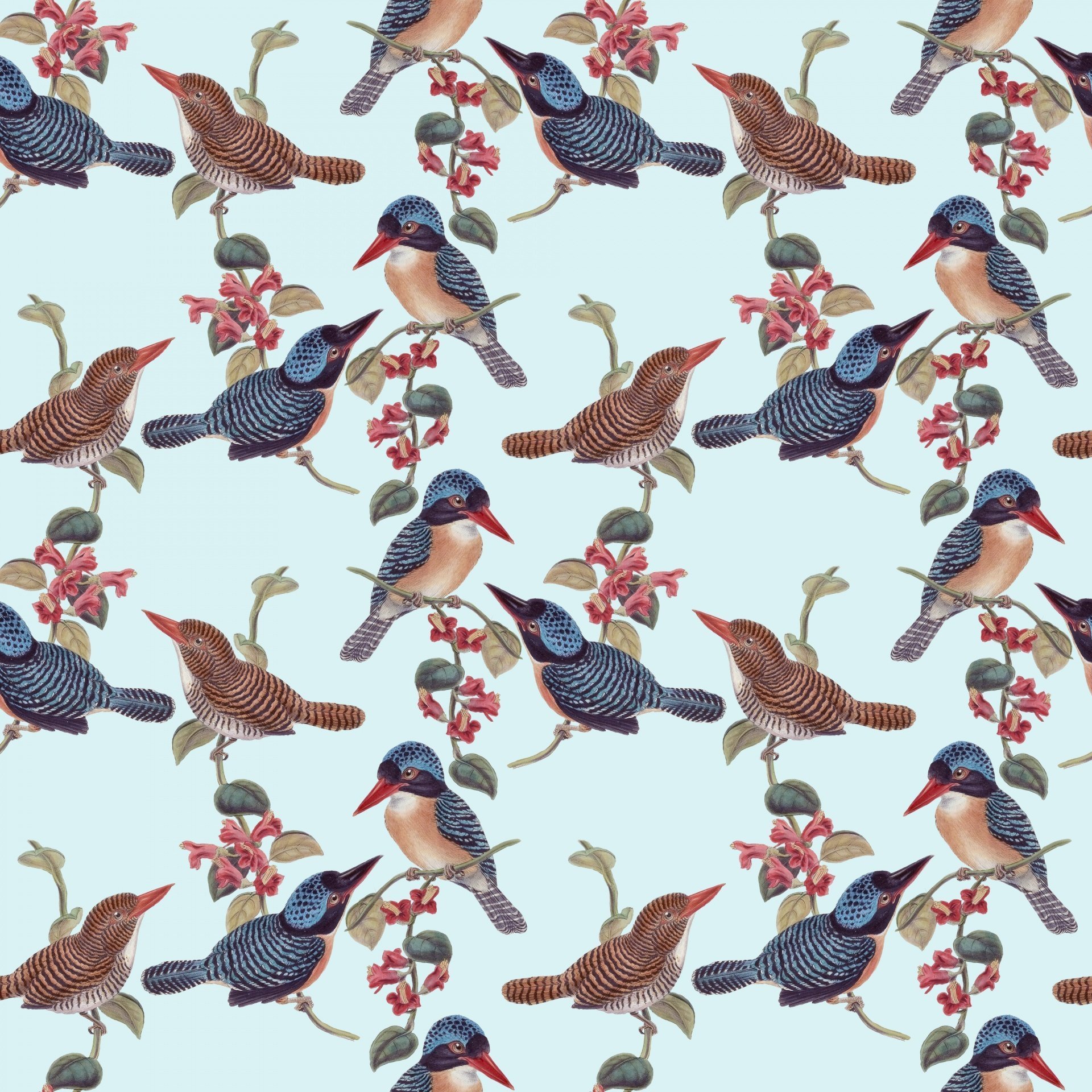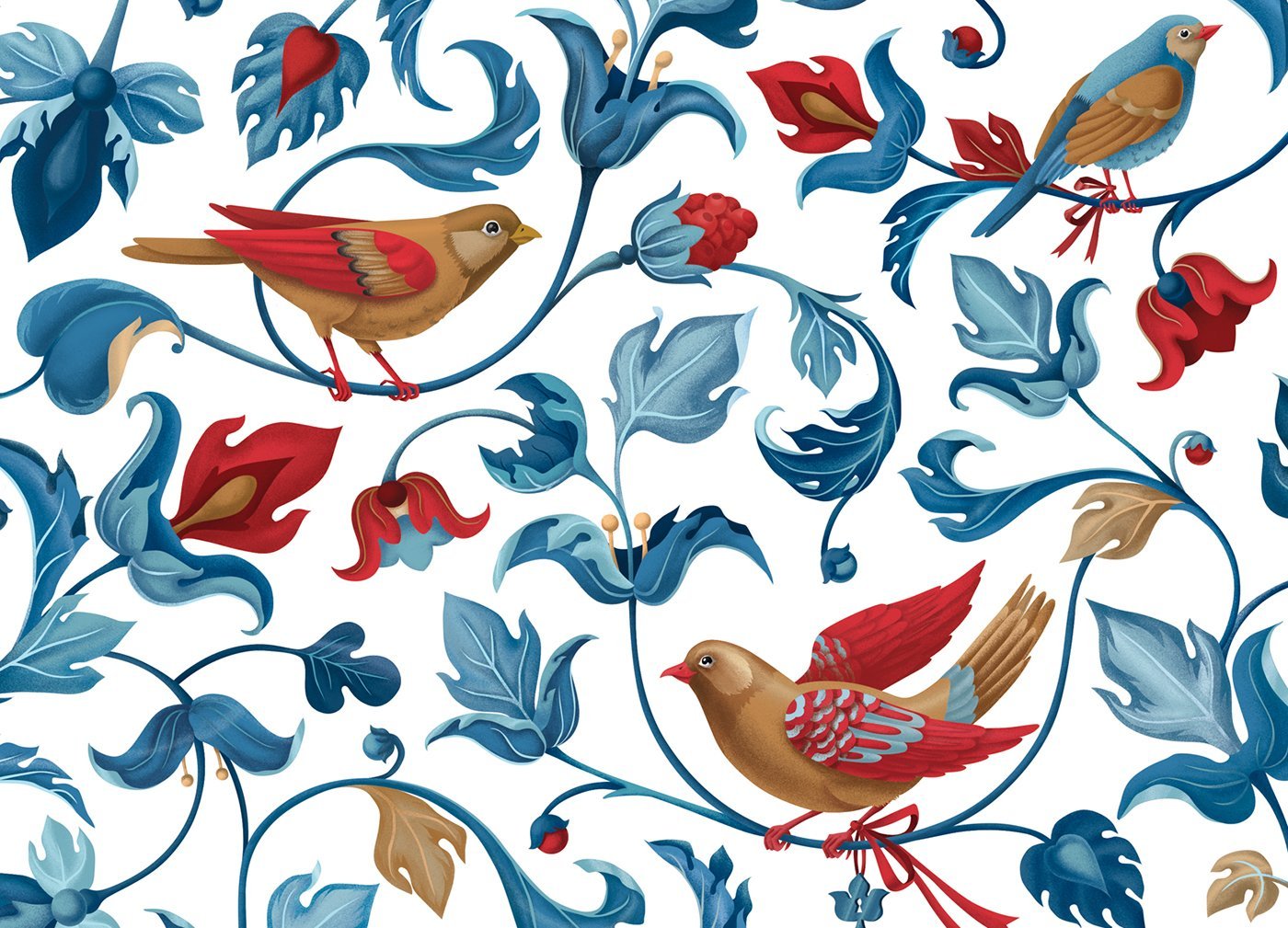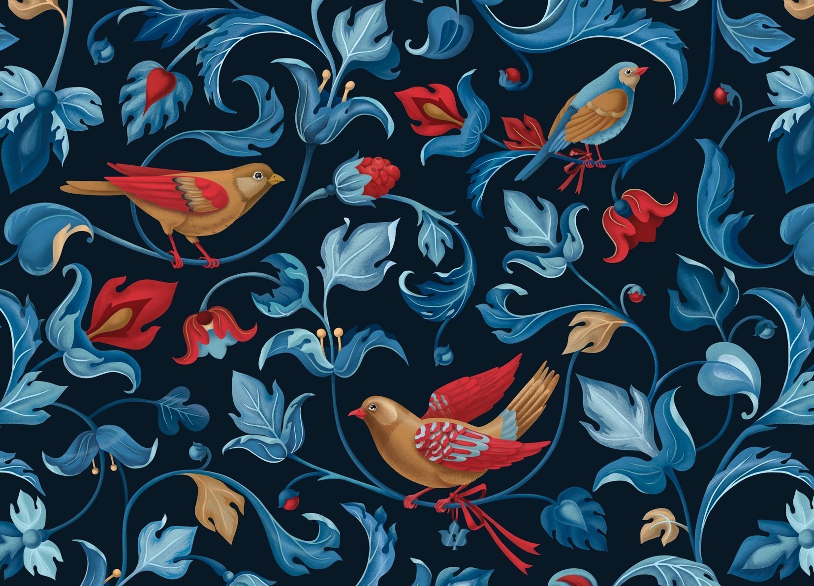 Паттерн цветы и птицы