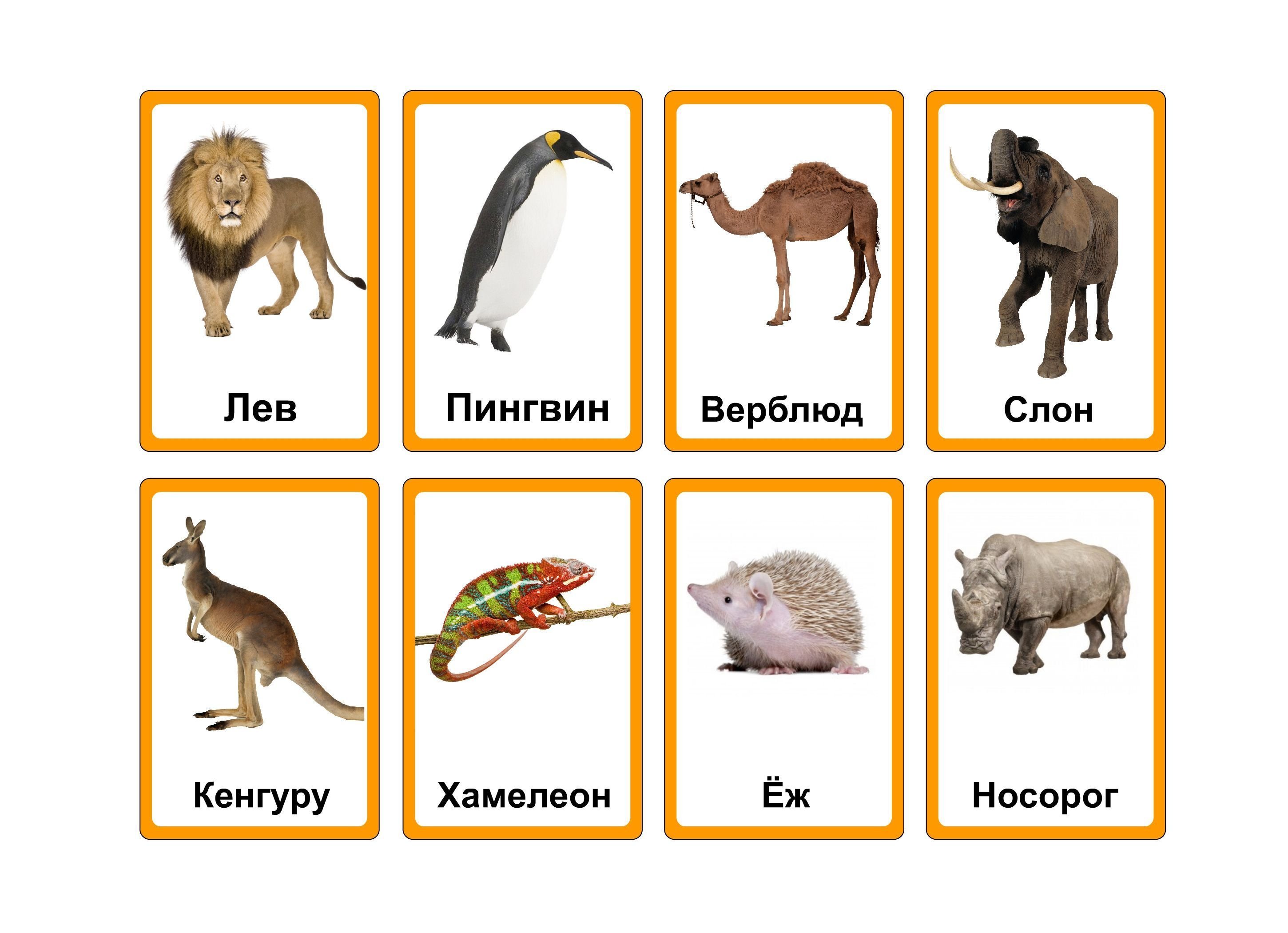 Карточки с изображением животных для детей