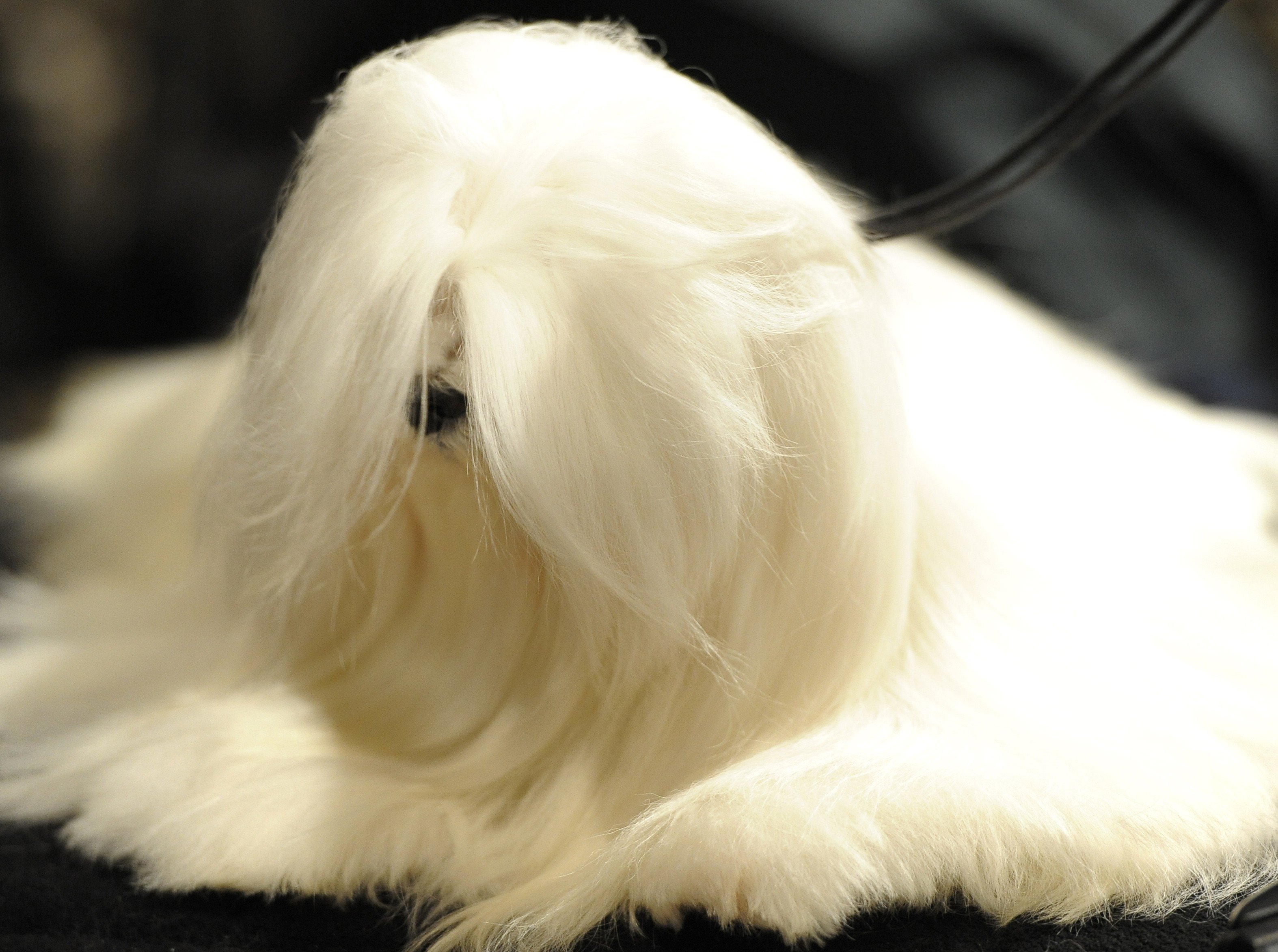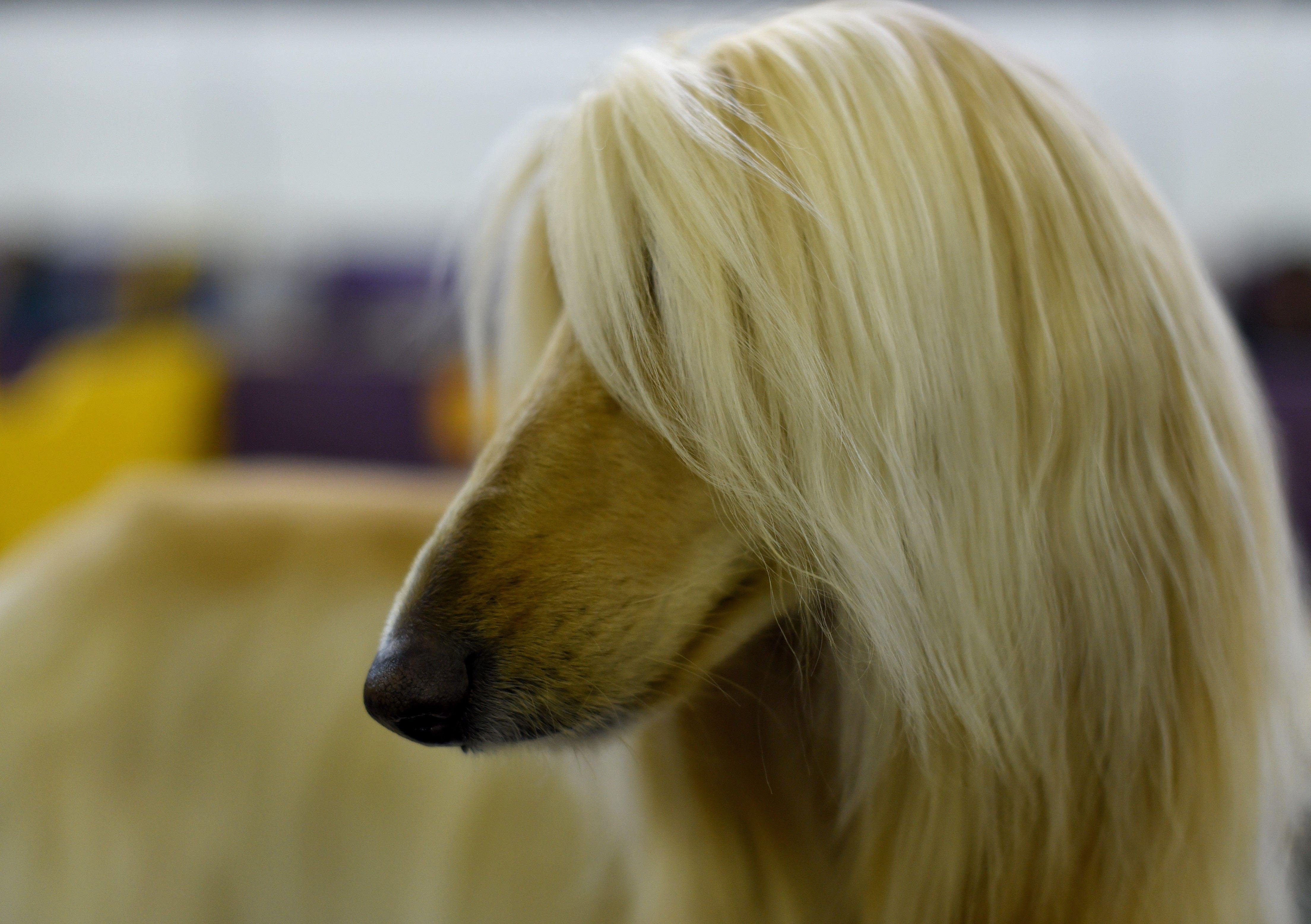 Собака с длинной шерстью на глазах