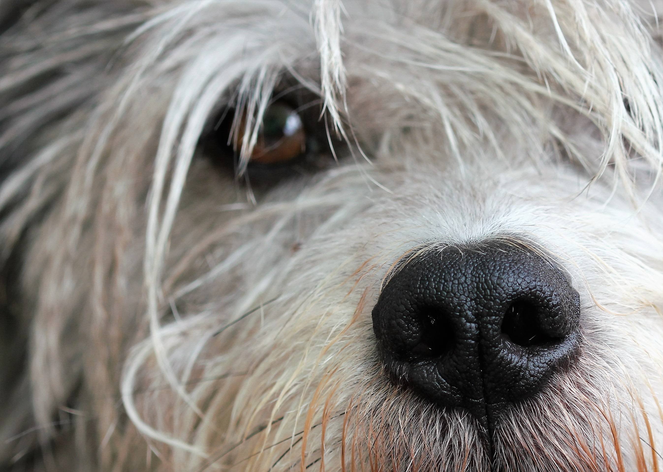 Собака с шерстью на глазах