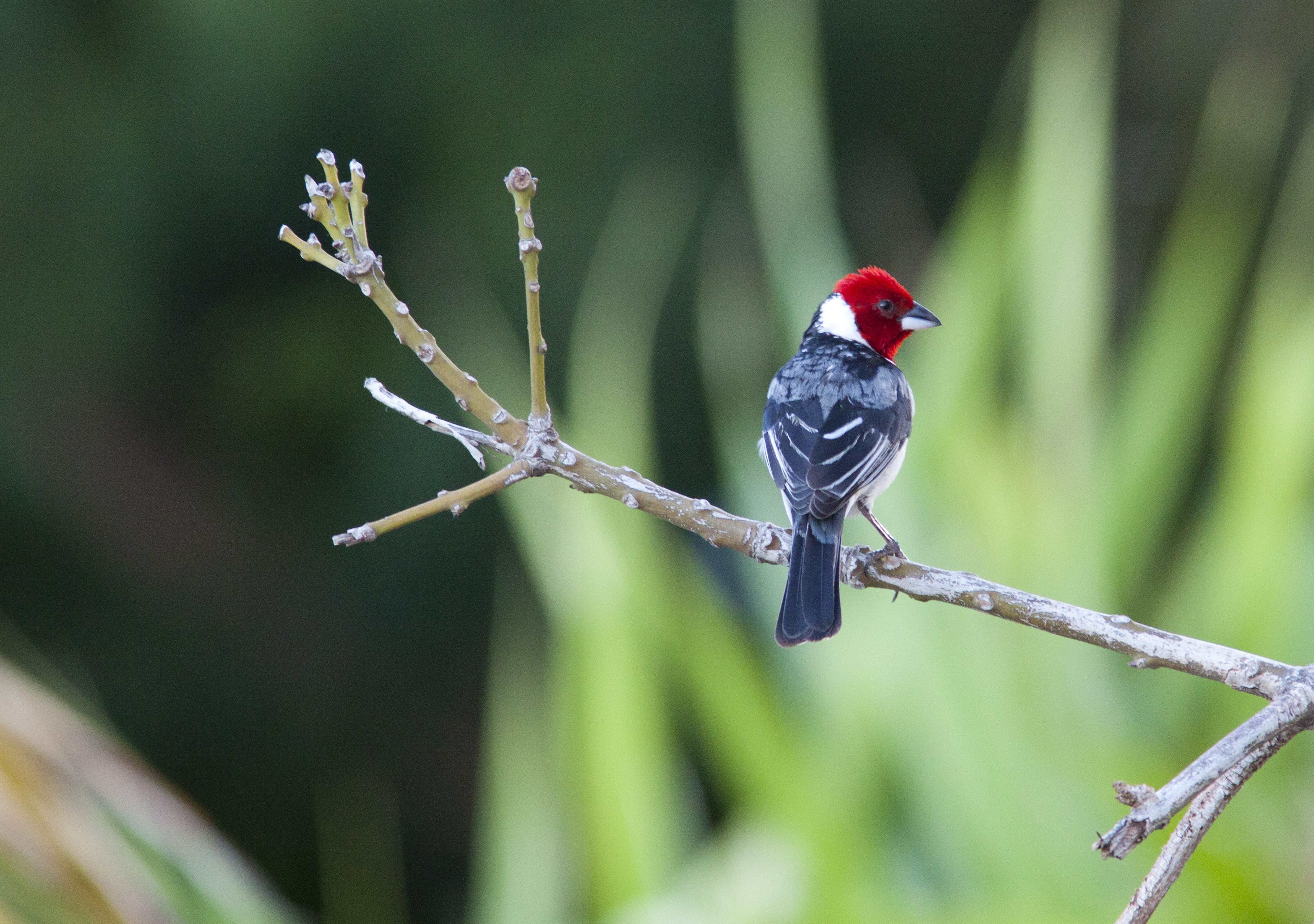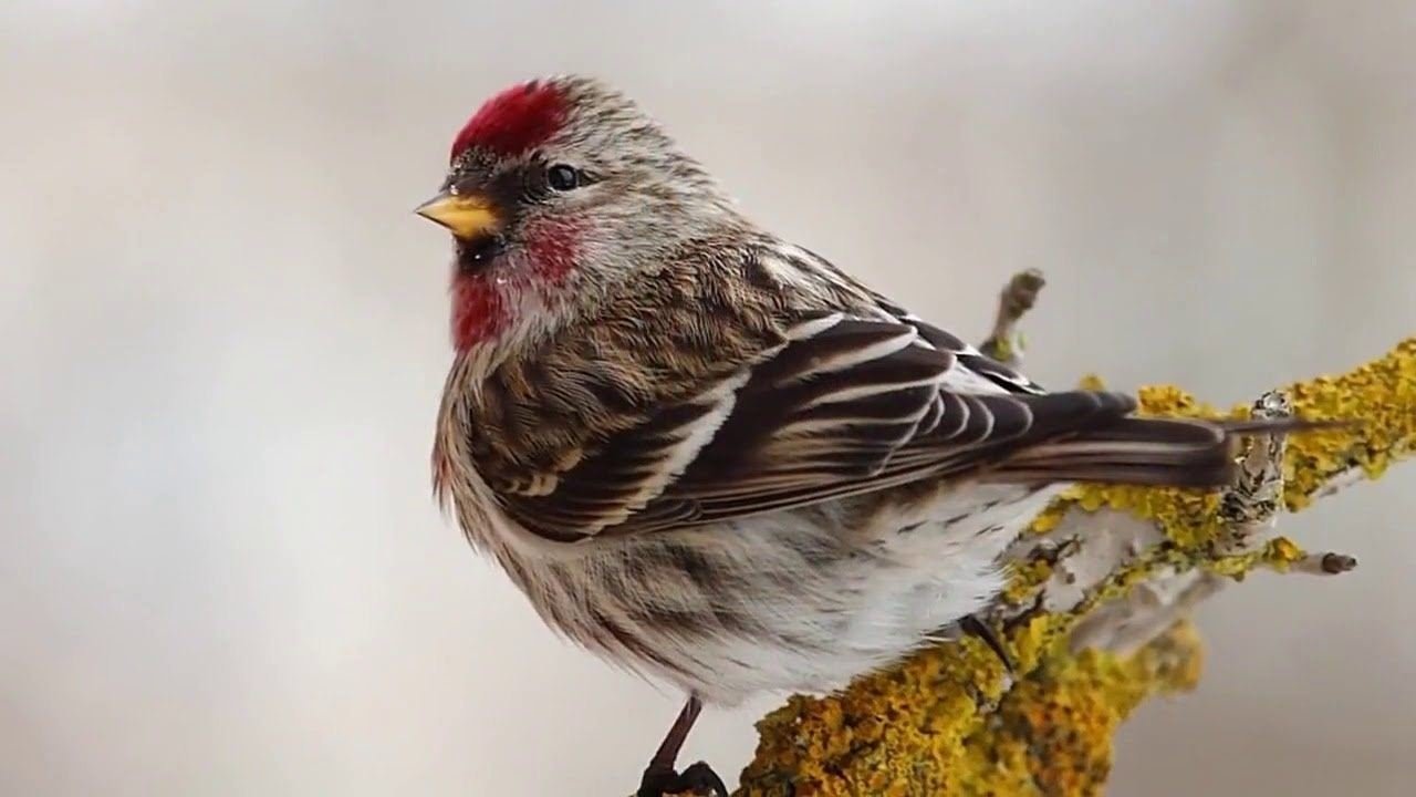 Пестрая птичка с красной шапочкой