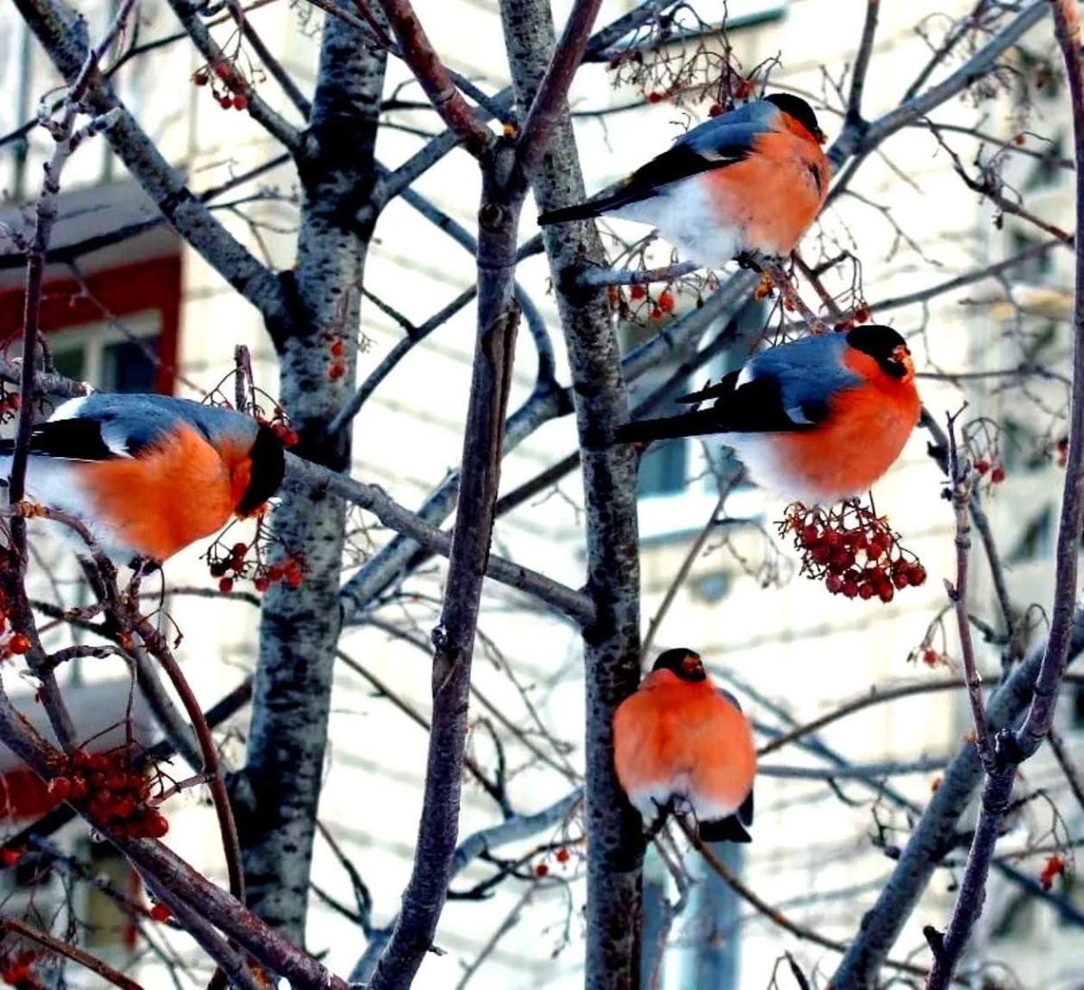 Зима рябина Снегири