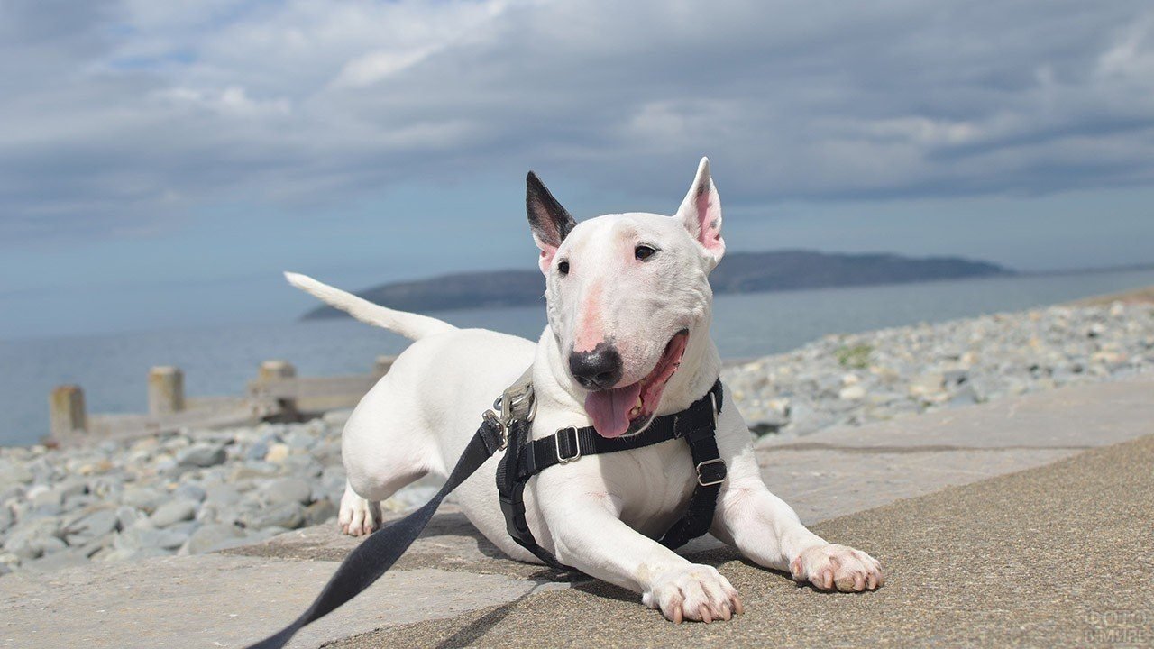 Белая собака бультерьер