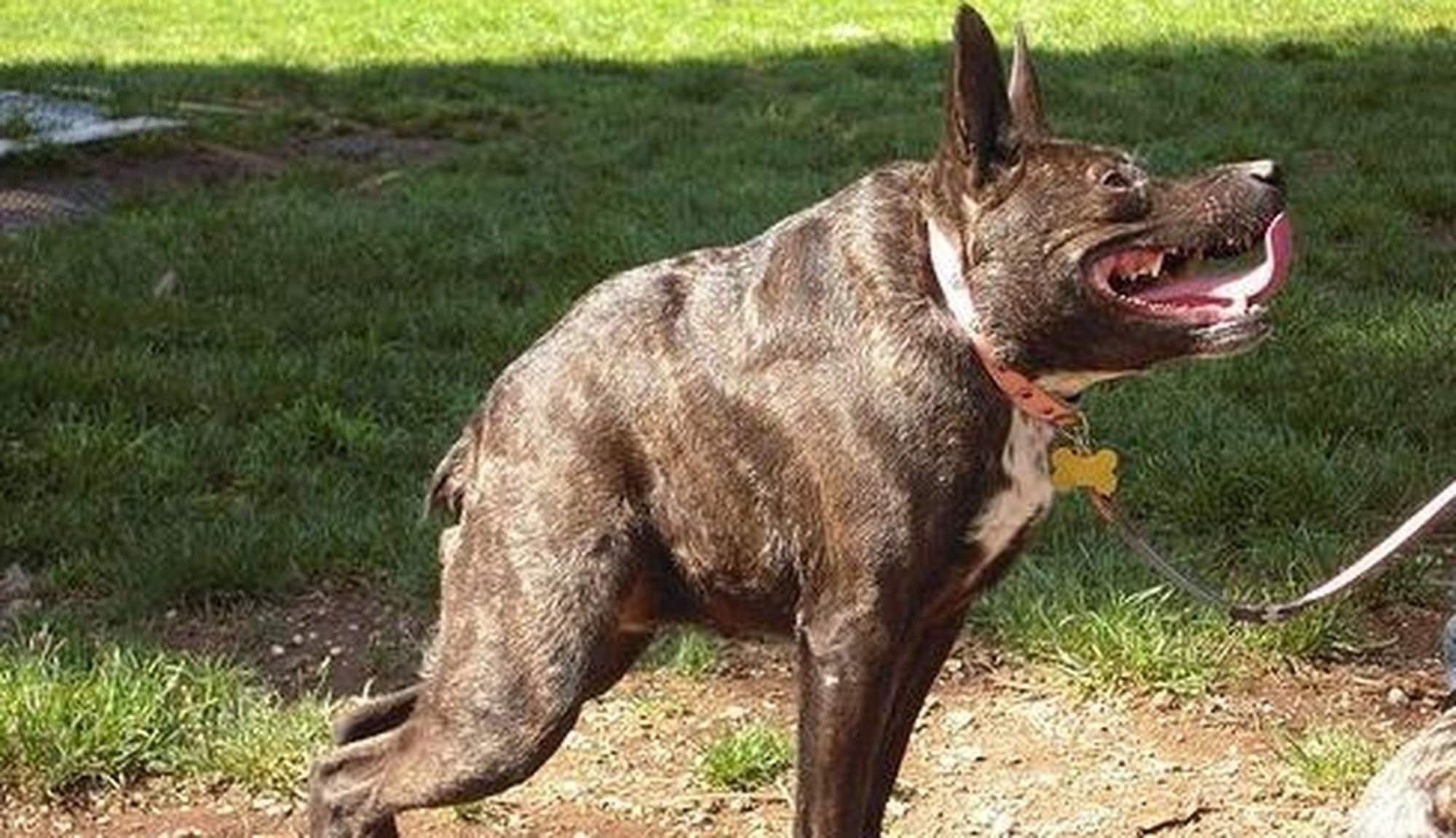 Собака Квазимодо с коротким позвоночником