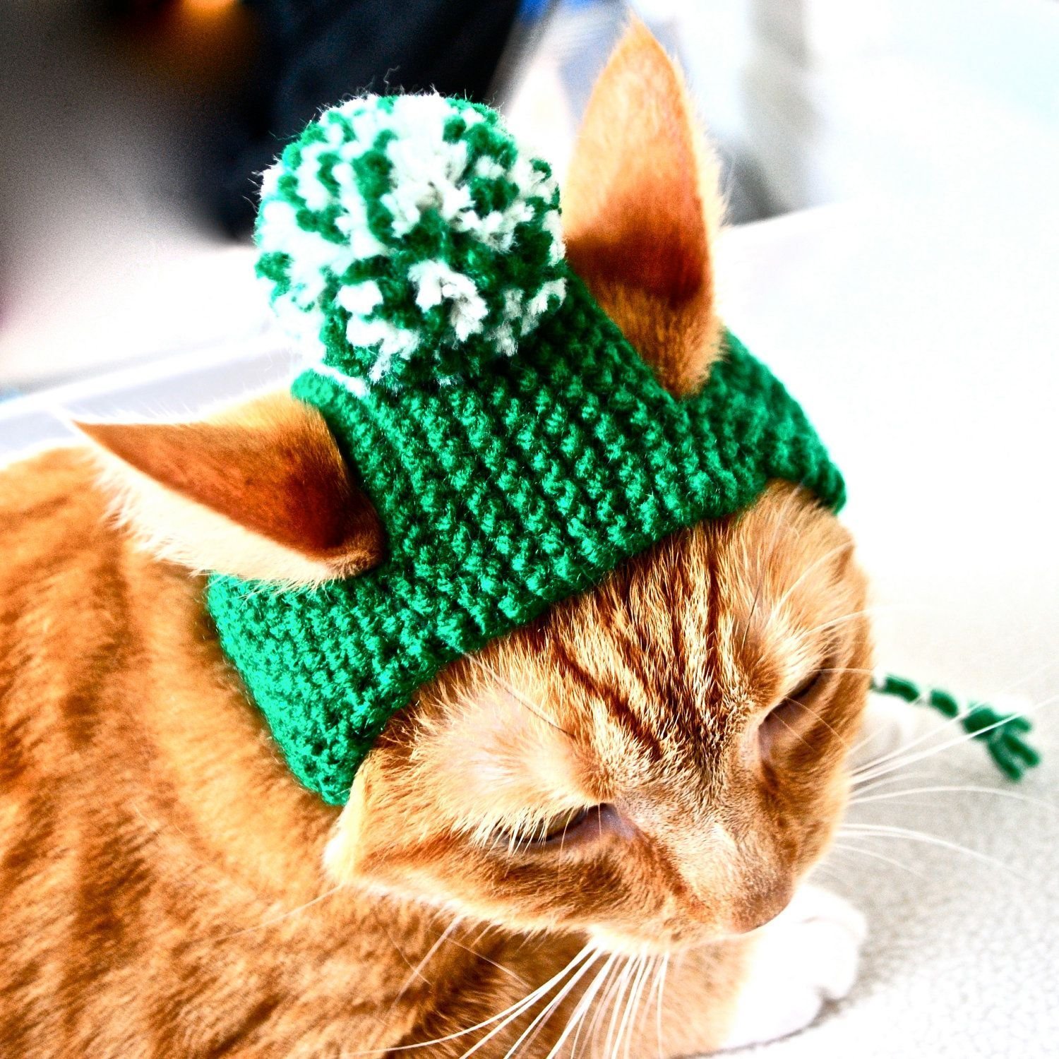 Котенок в зеленой шапочке