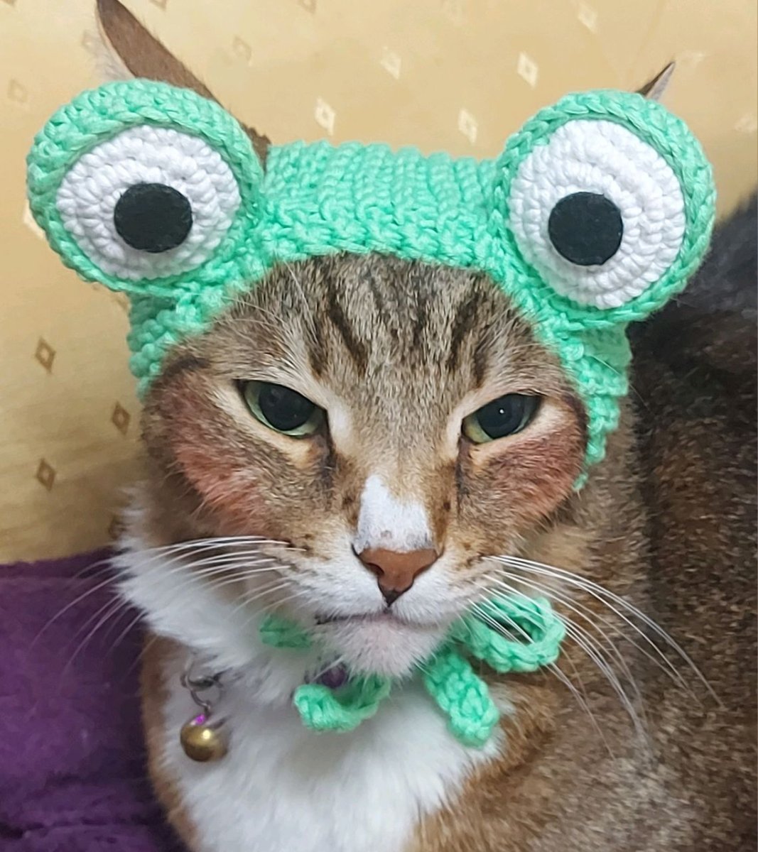 Котик в шапочке лягушки