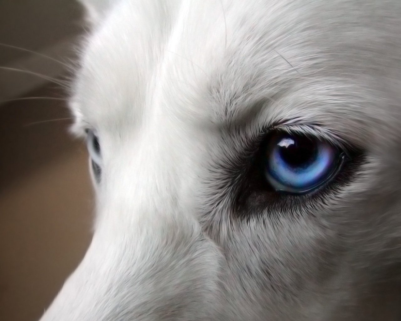 Белая Сибирская хаски с карими глазами