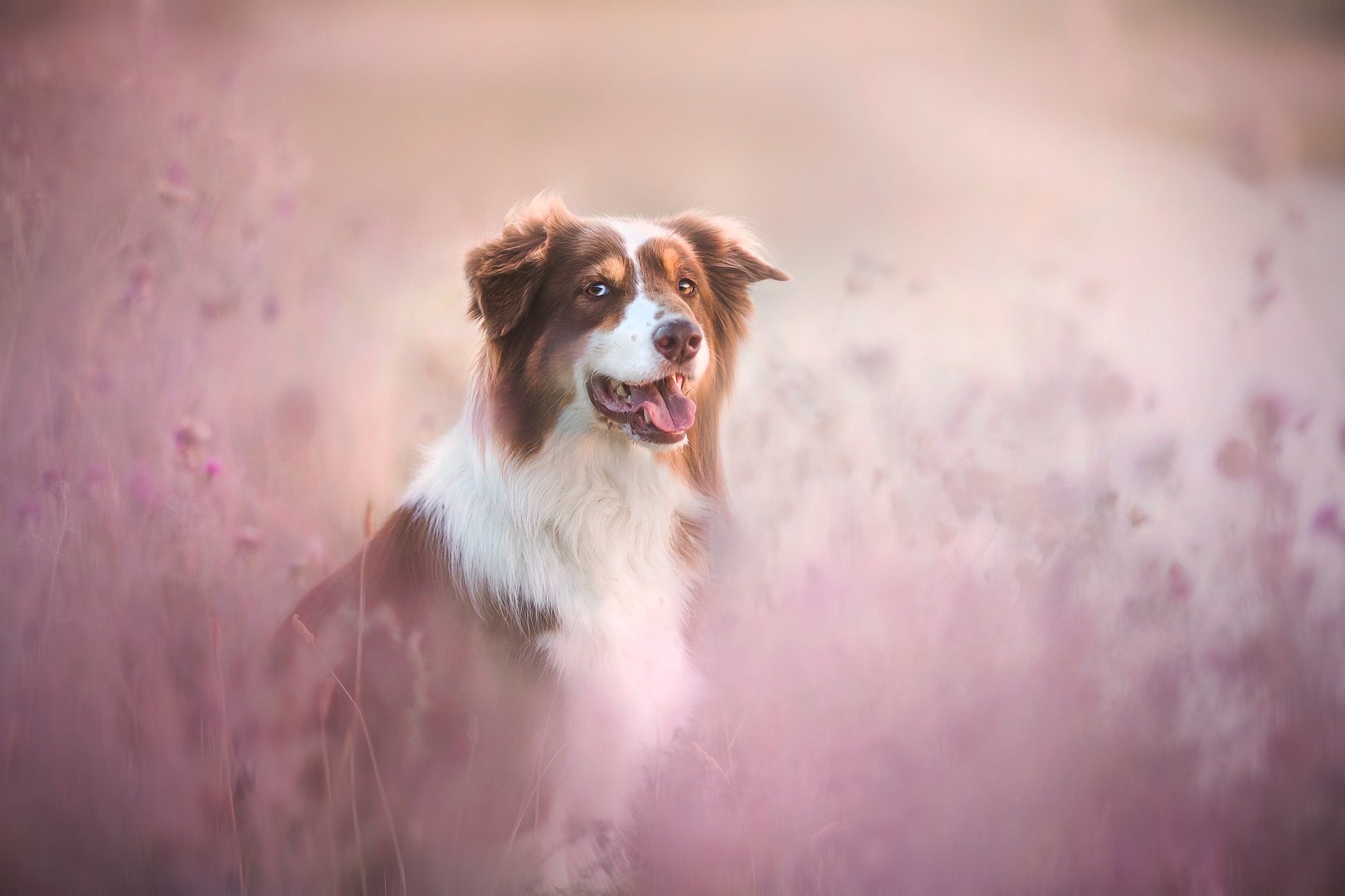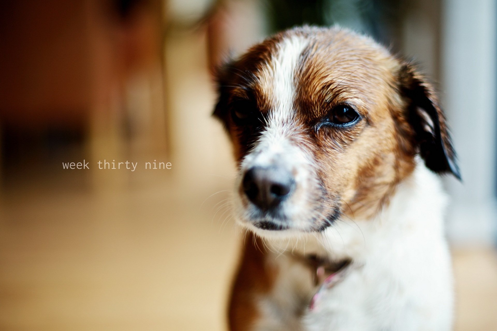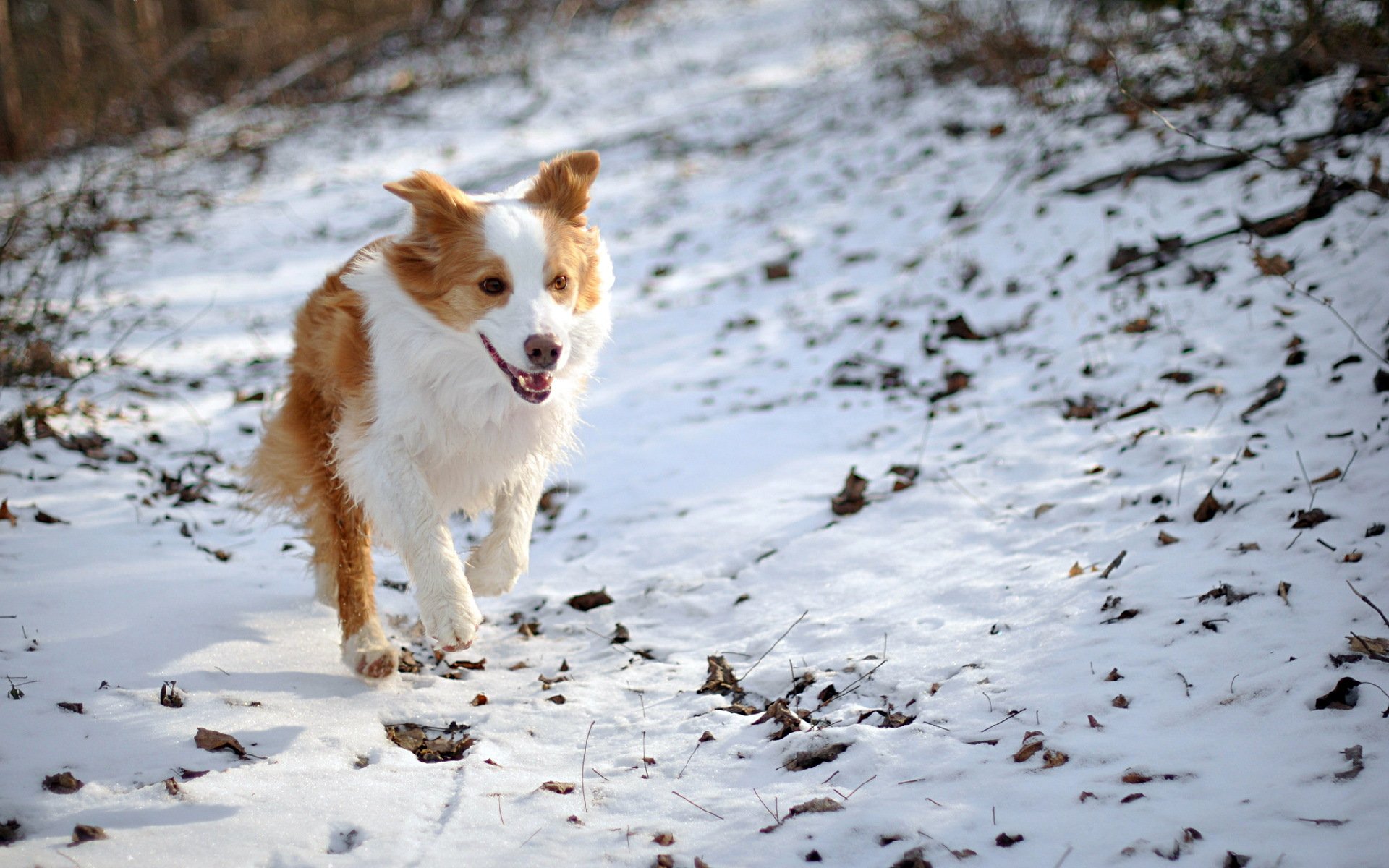 Бело-коричневая собака на обои в доме