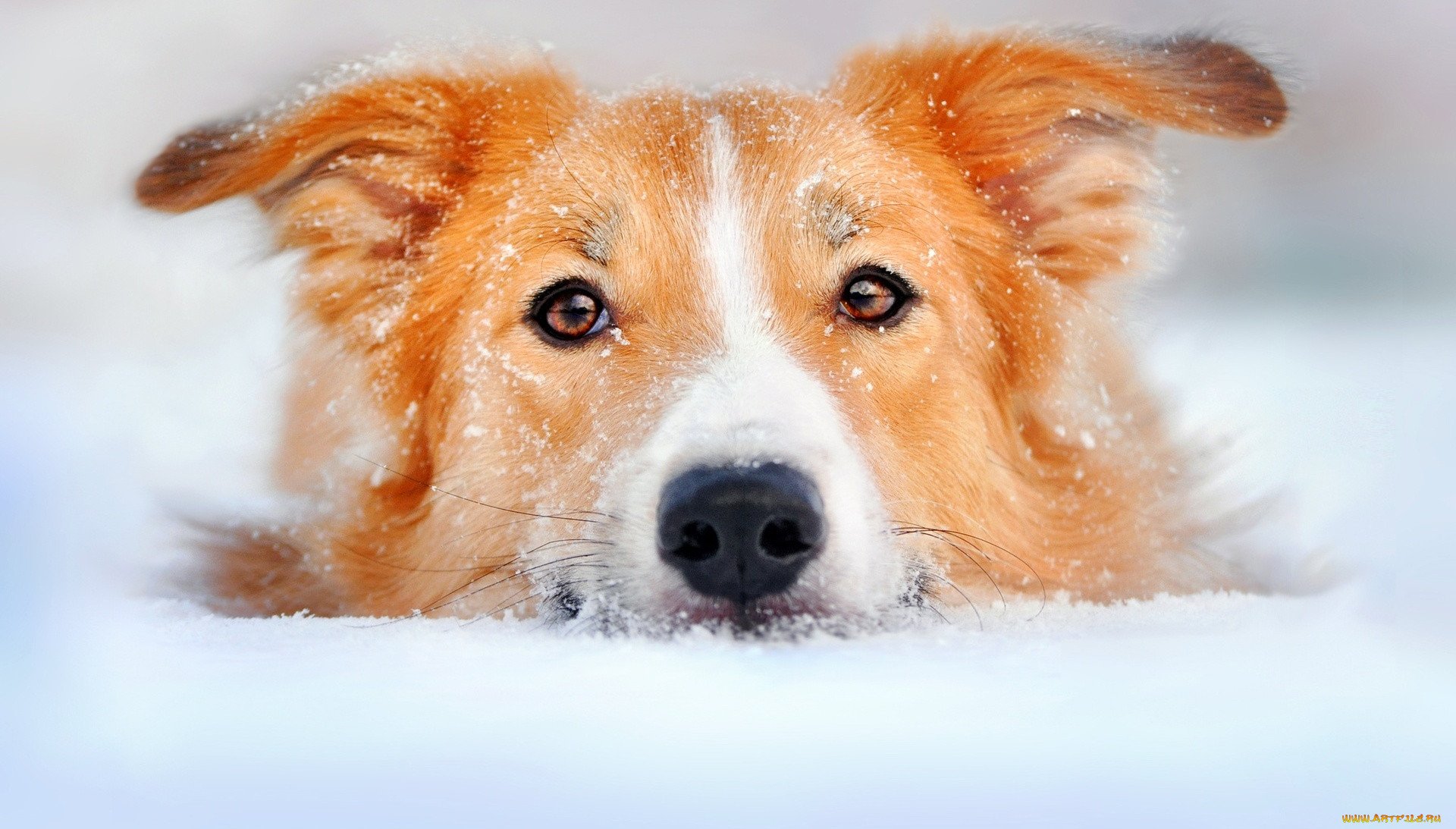 Собака снег зима