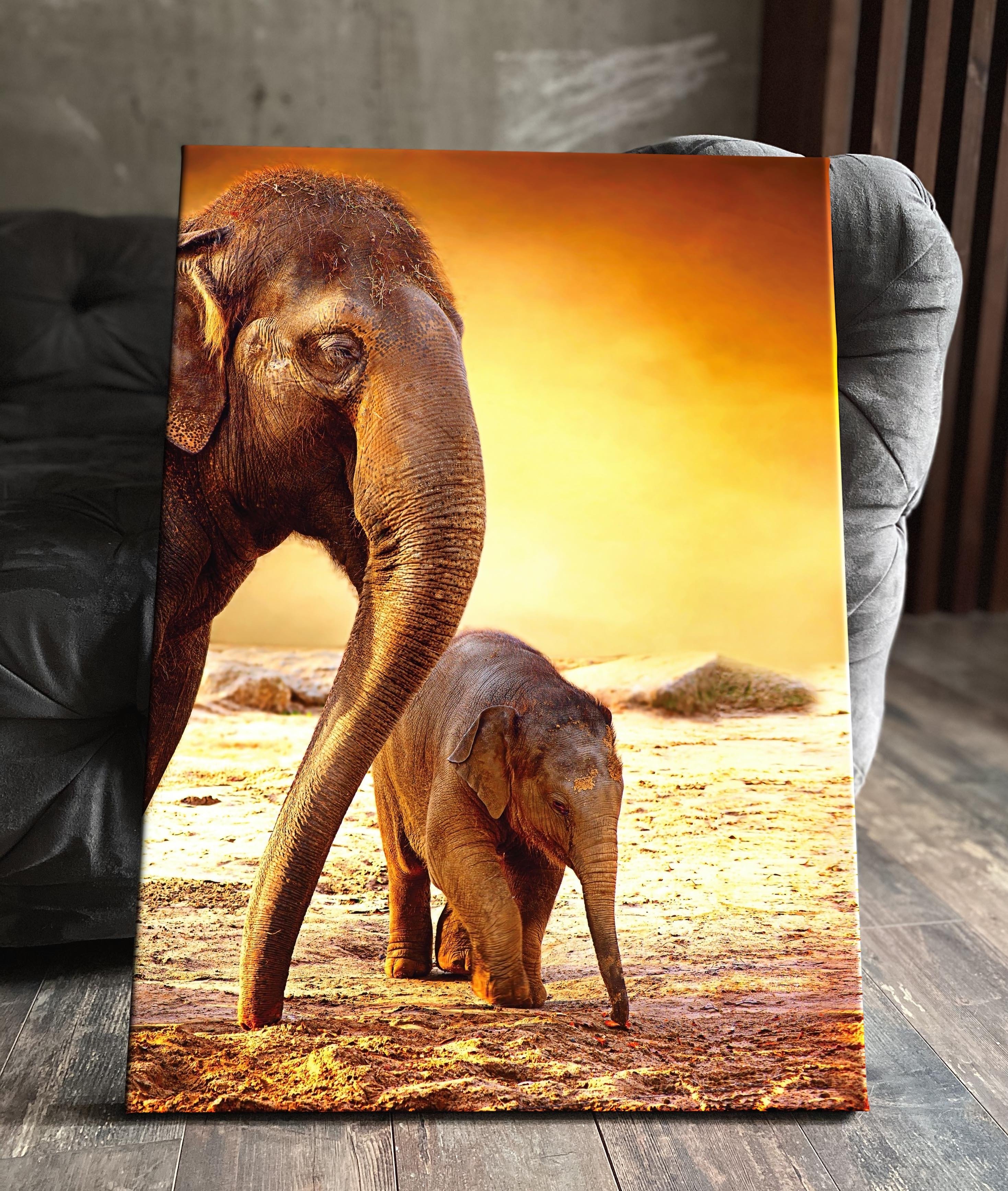 Коричневые слоны на картине в спальне