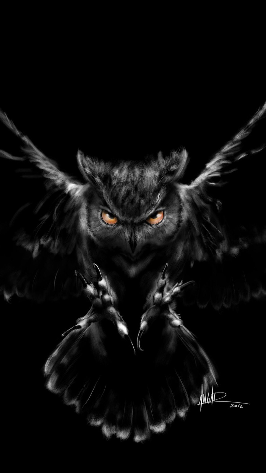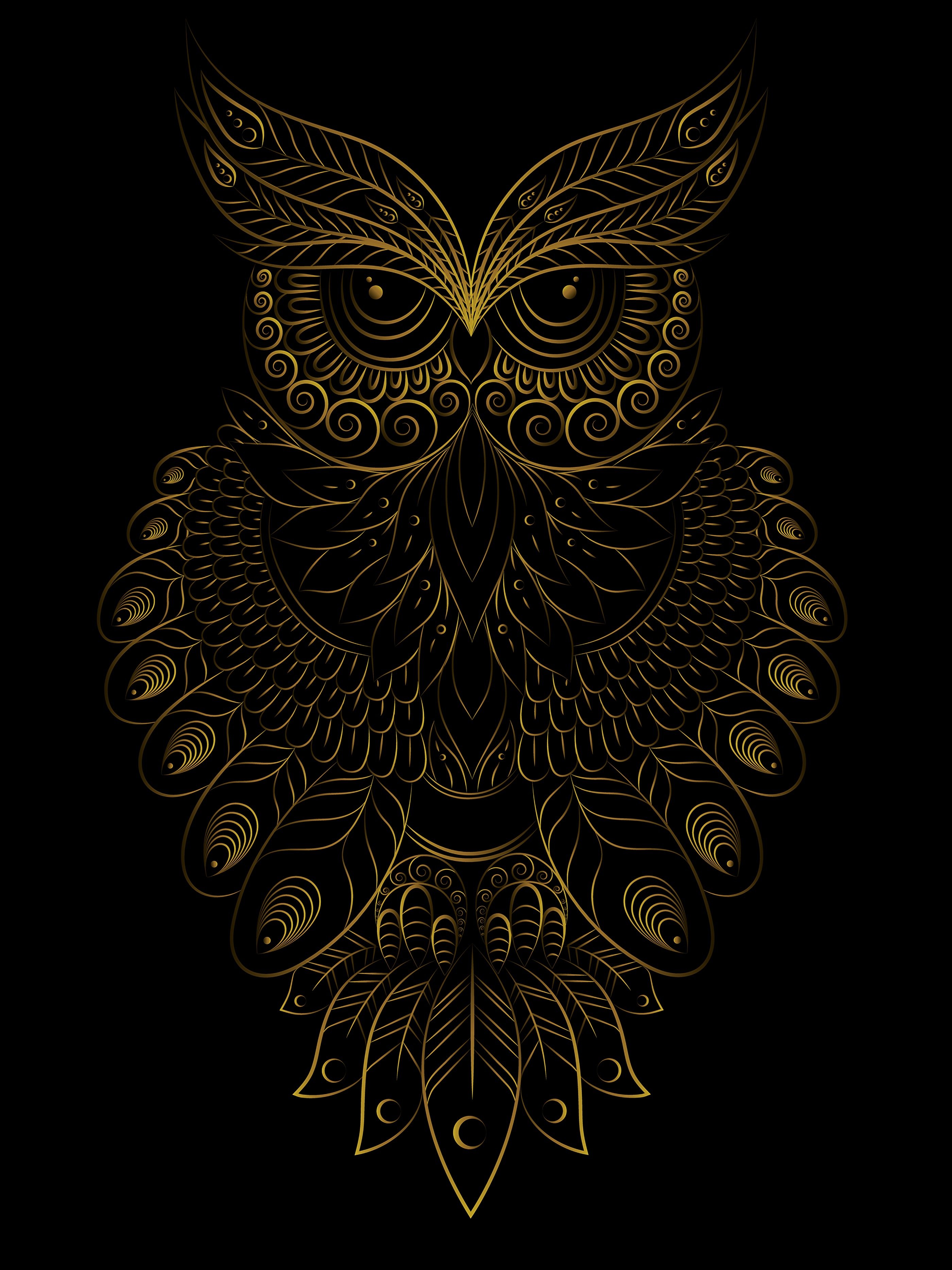 Красивая Сова на черном