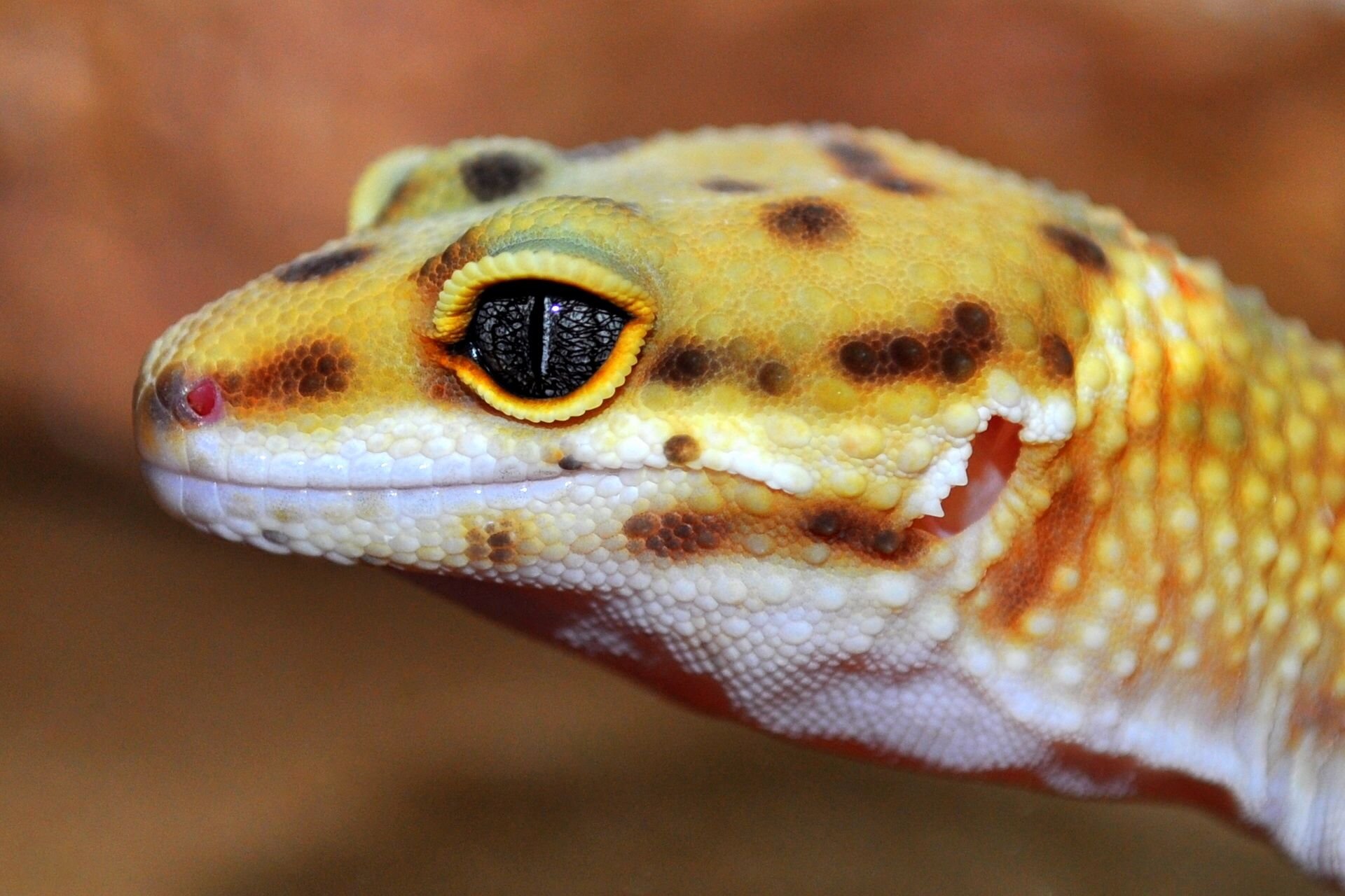Геккон эублефар улыбается