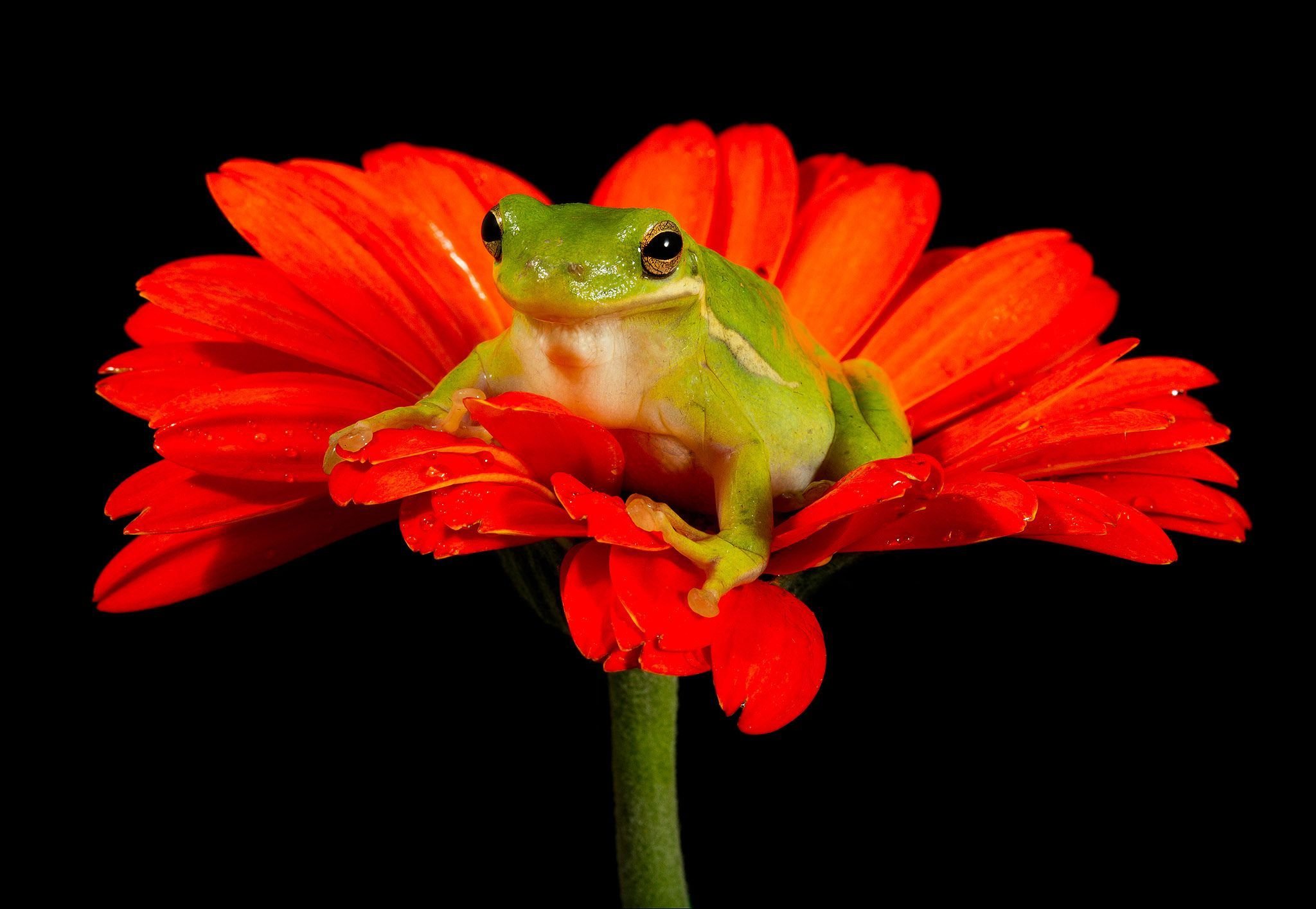 Лягушка на черном фоне
