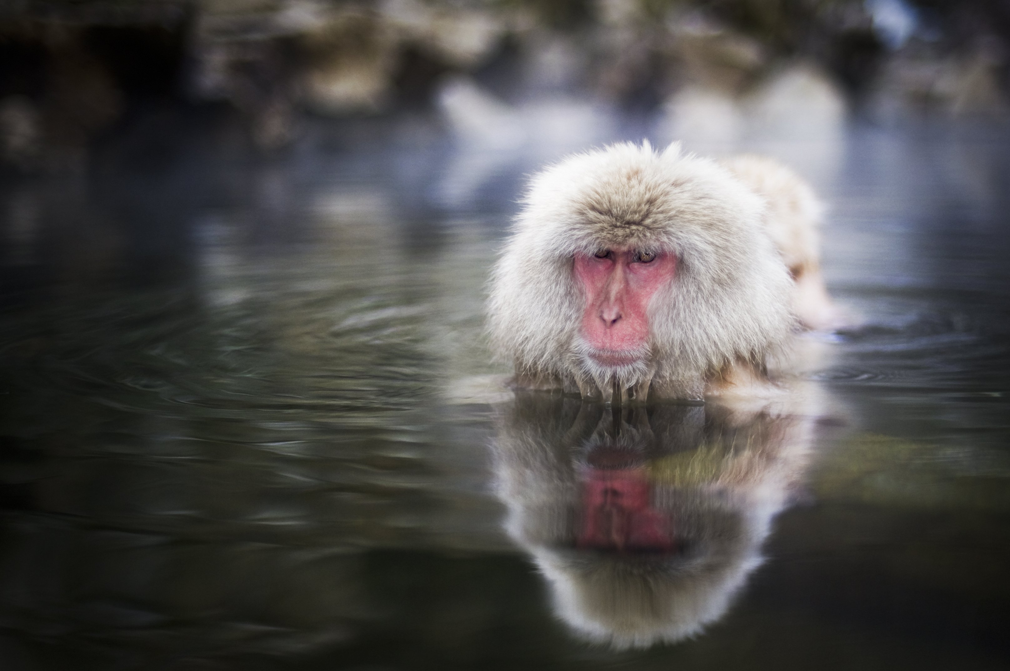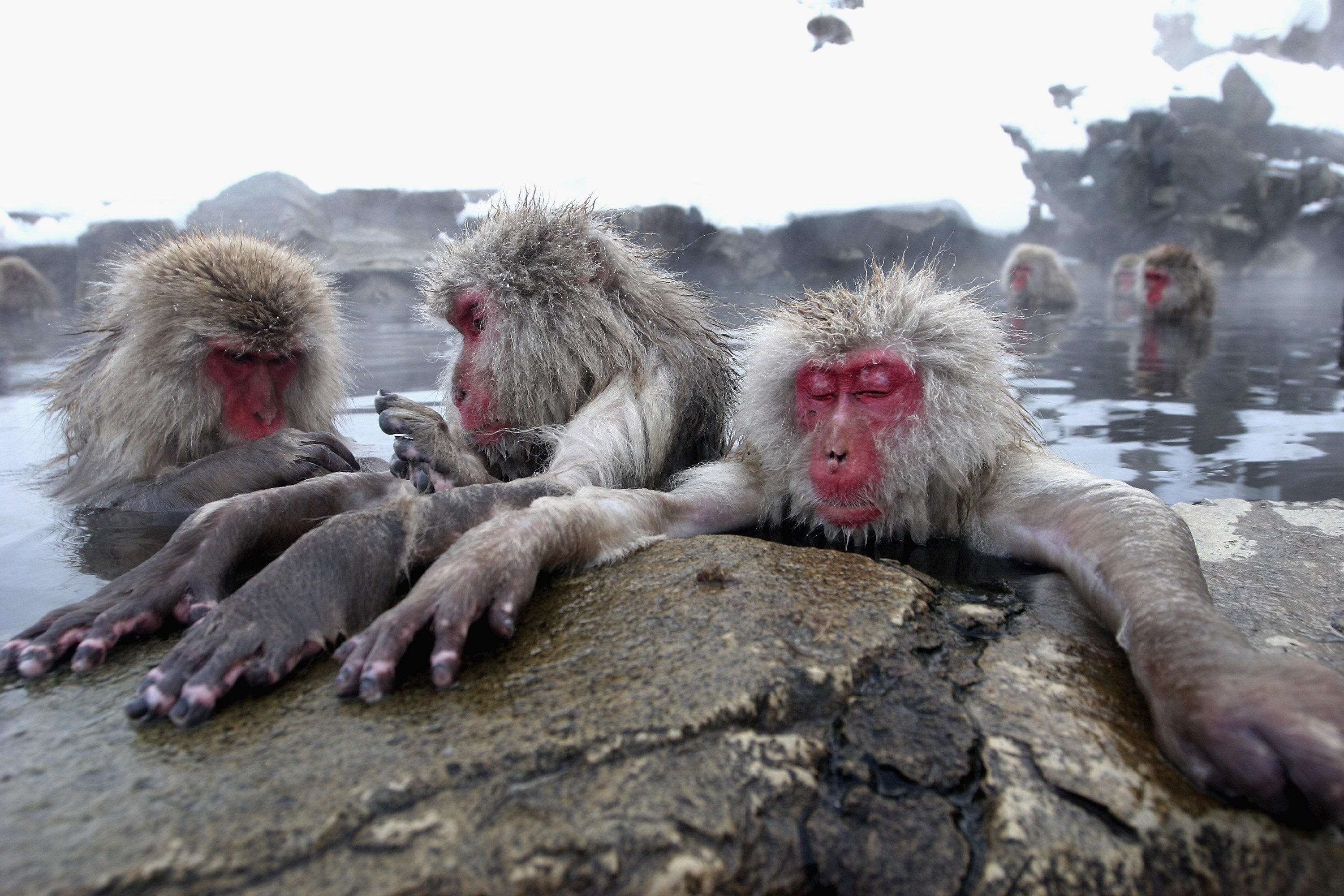 Обезьяны в Японии в горячих источниках