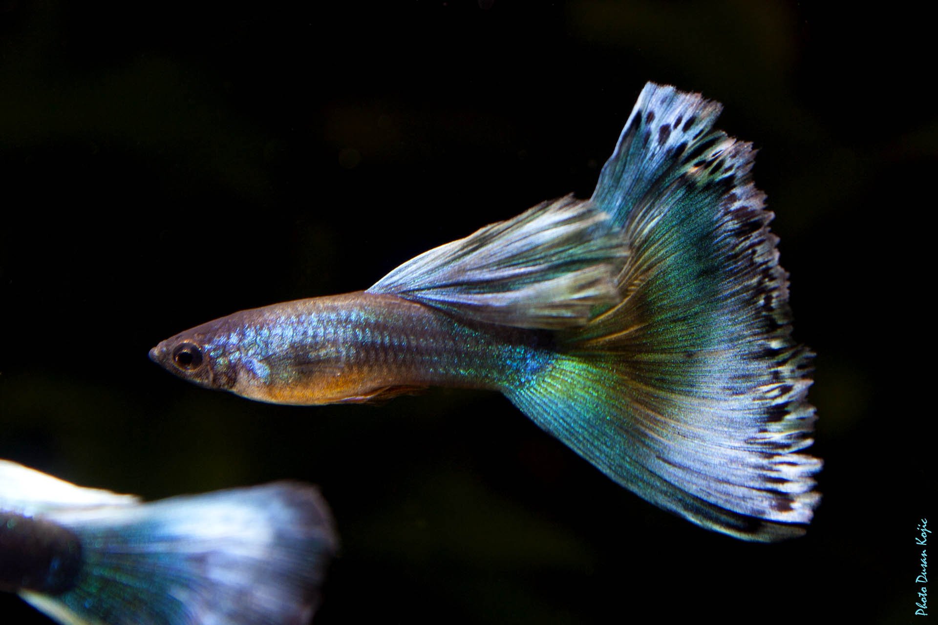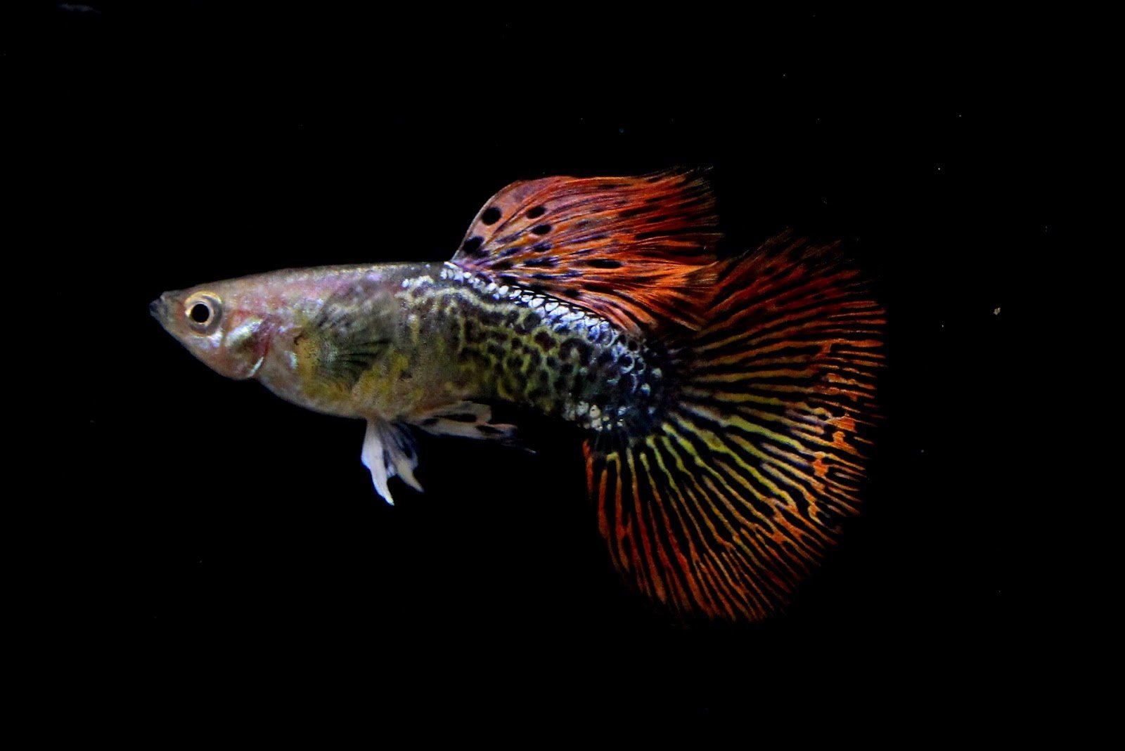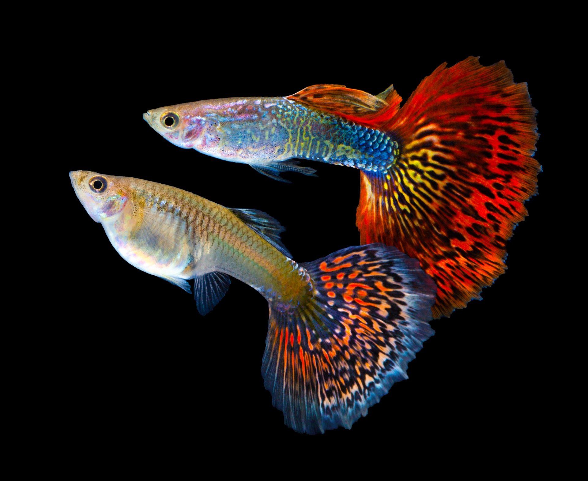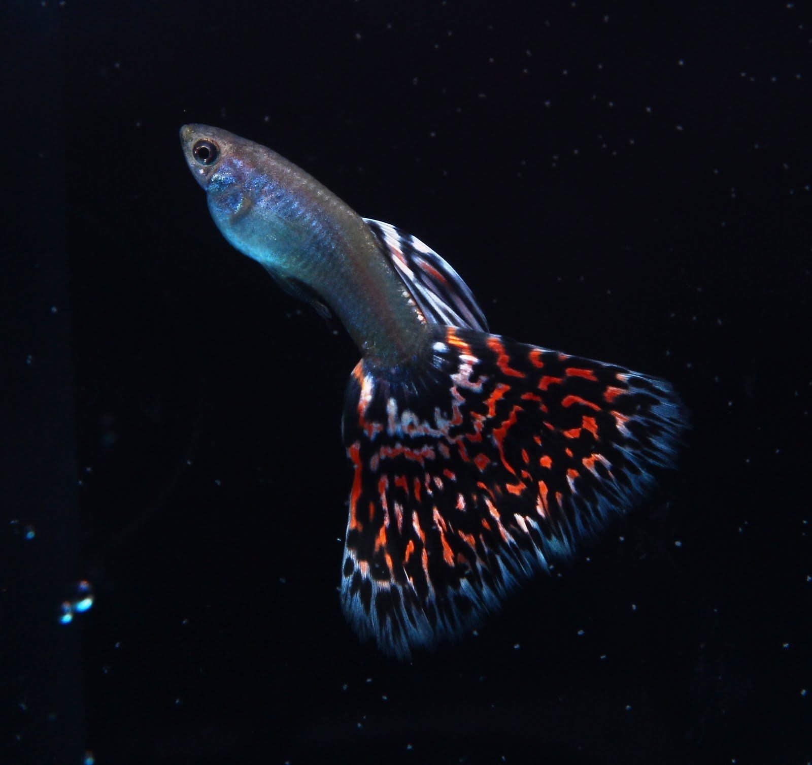 Рыбка гуппи на черном фоне