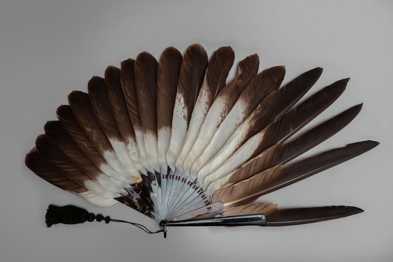 Японский веер с перьями
