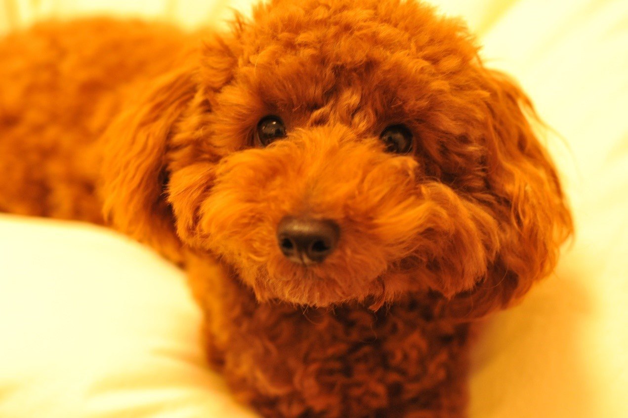 Пудель рыжий кудрявый карликовый