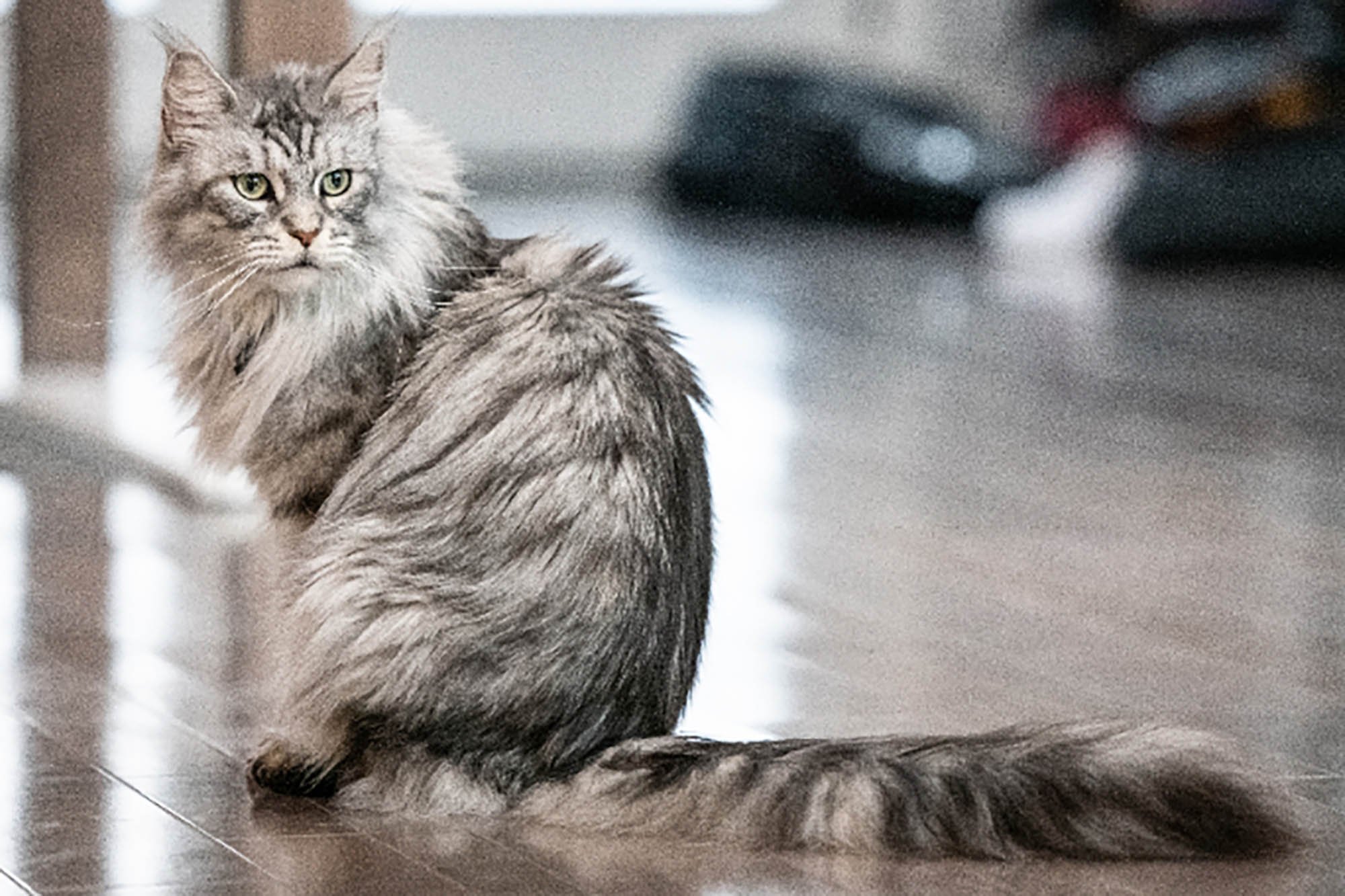 Мейн кун кошка с пушистым хвостом
