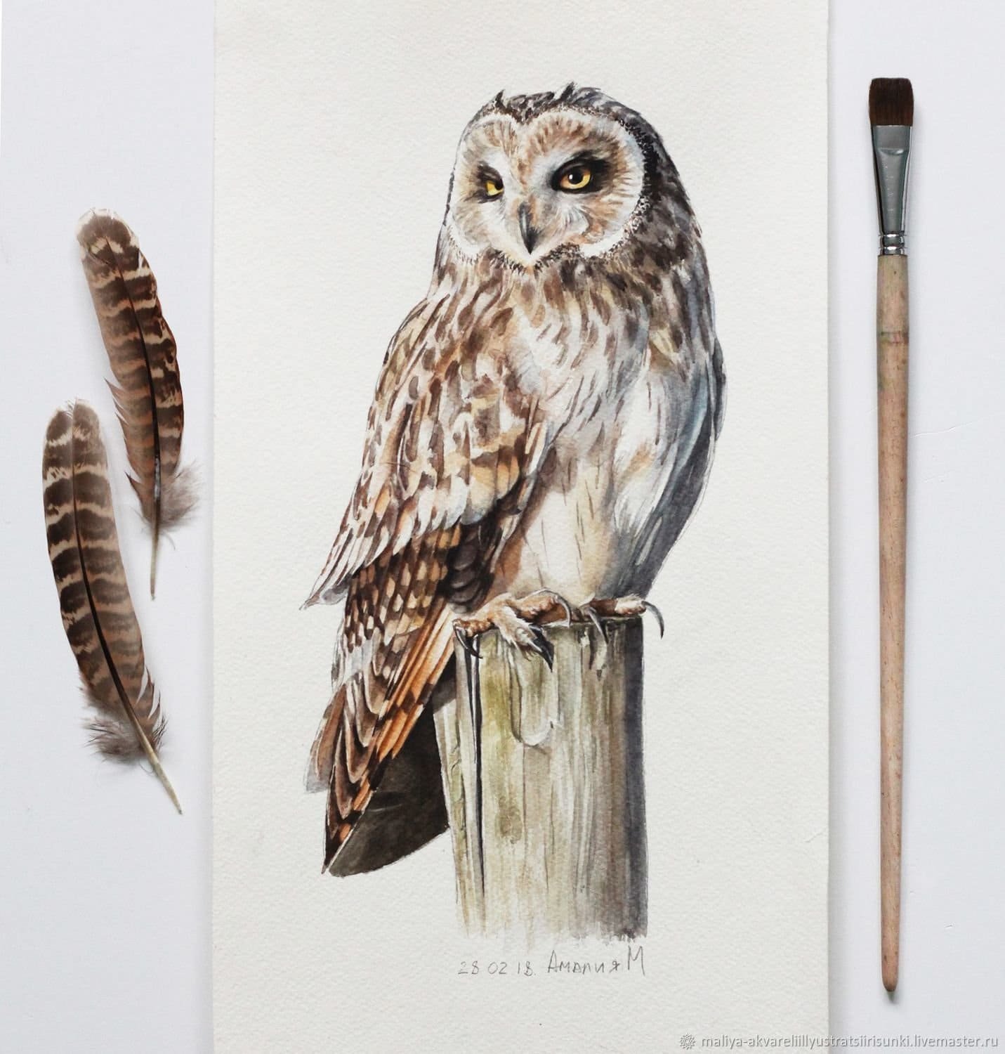 Совенок акварель