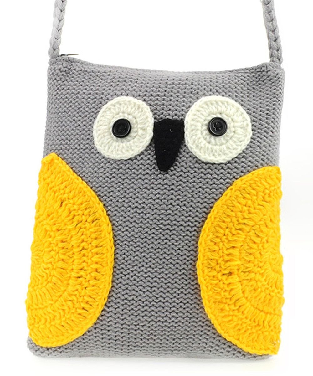 Сумка вязанная с совой и тонким ремешком