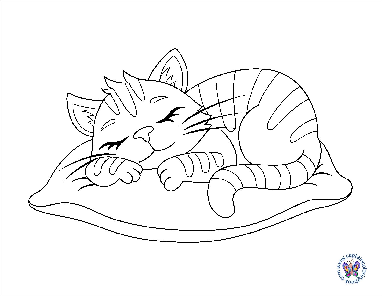 Спящий котик раскраска