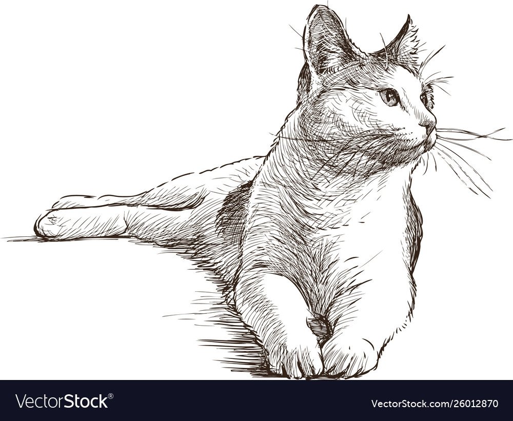 Эскиз кота лежа
