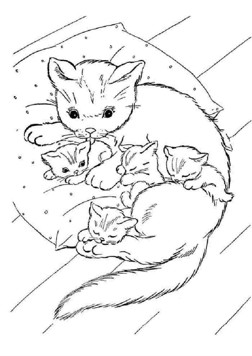 Кошка спит раскраска