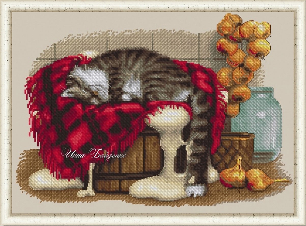 Вышивка крестом кот монохром