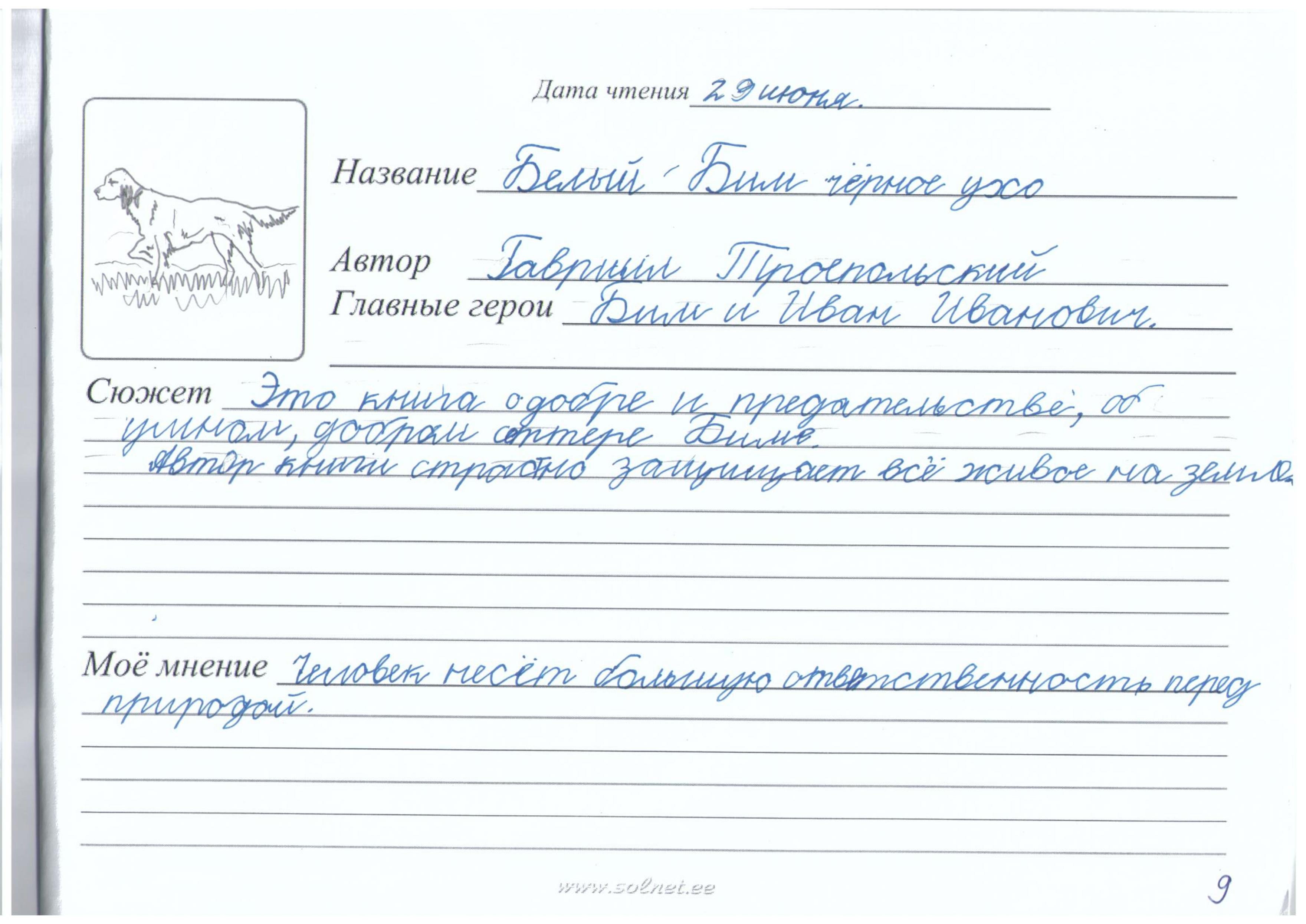 Кот Иваныч читательский дневник
