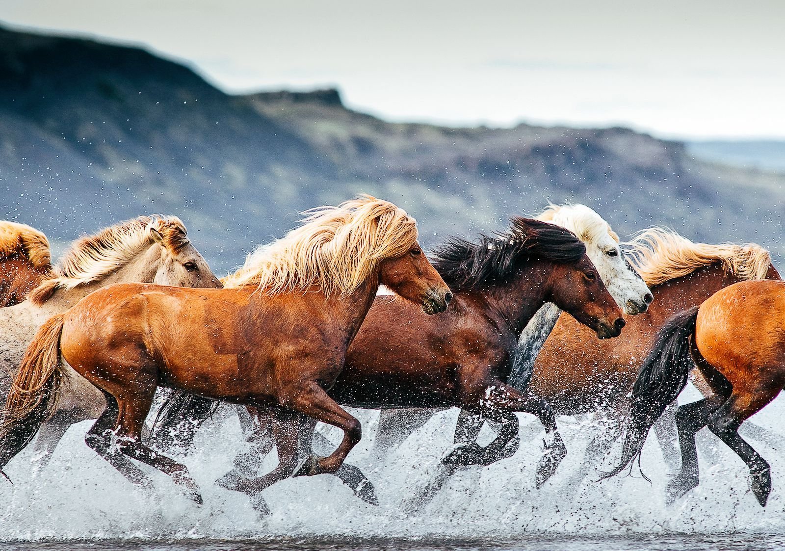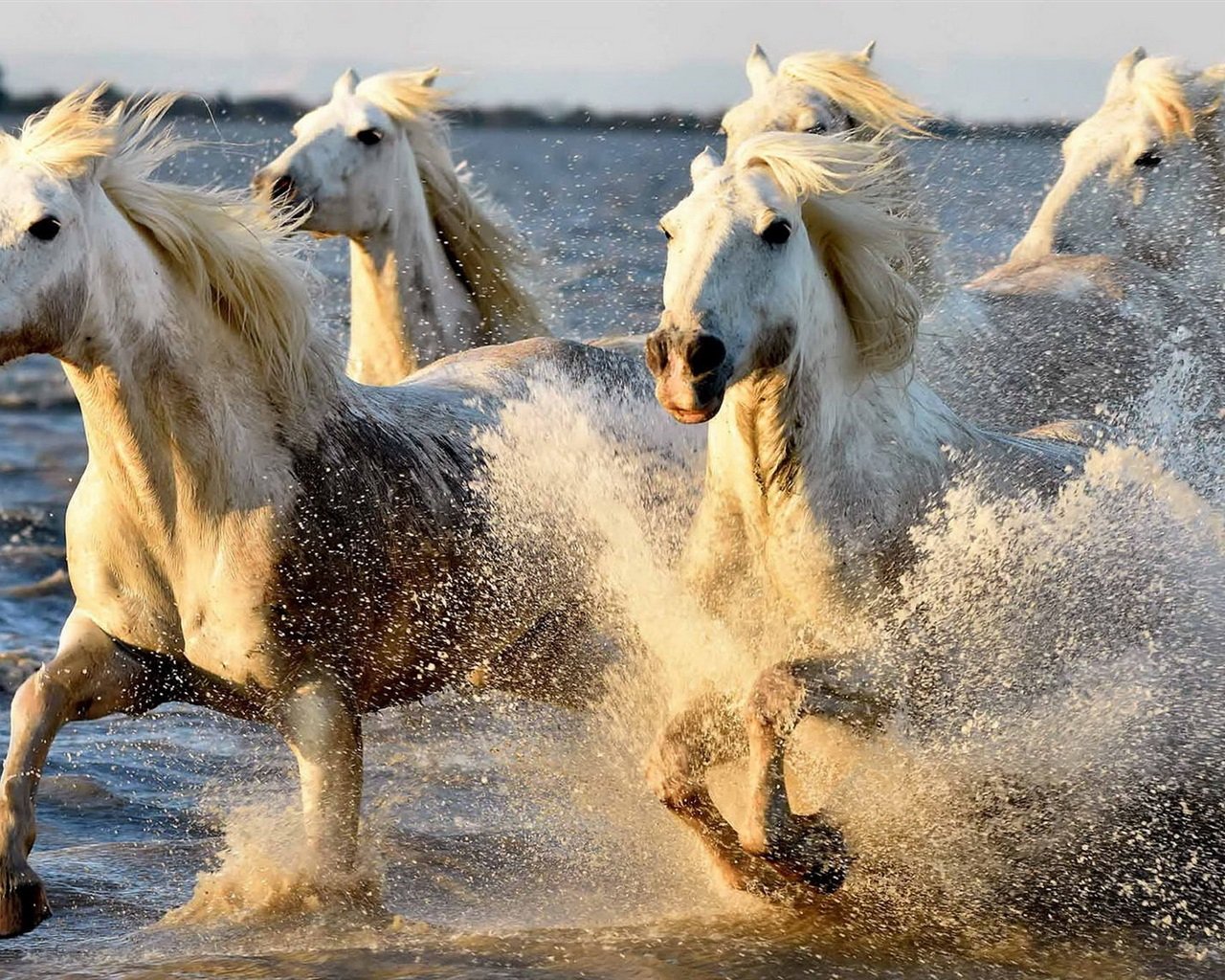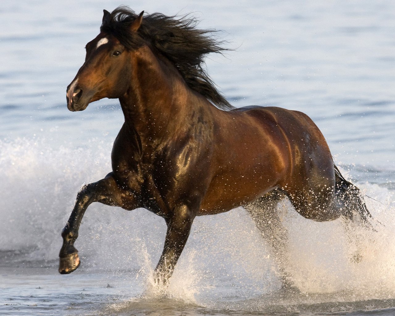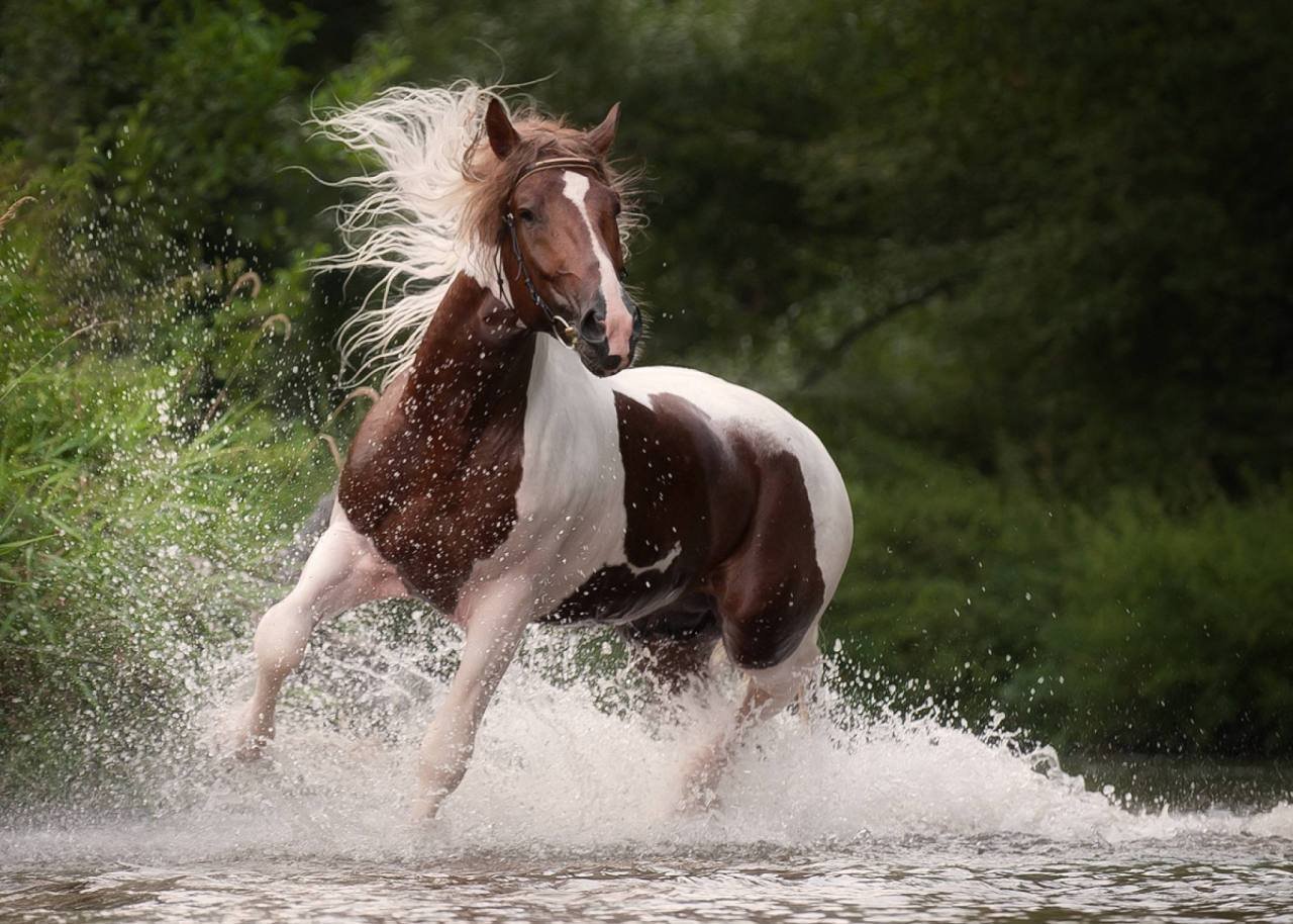 Лошадь бежит по воде