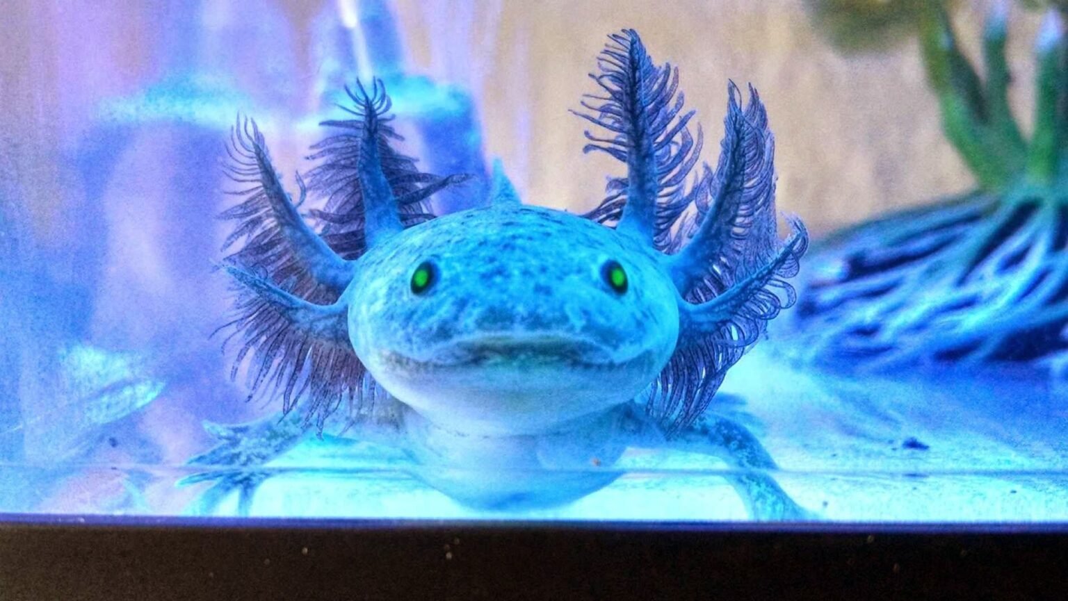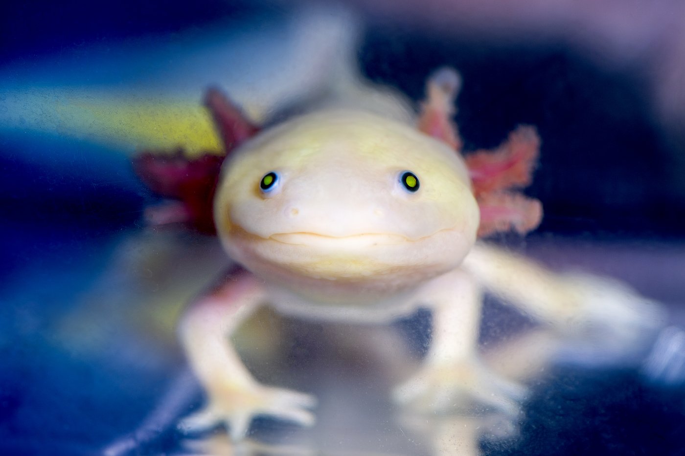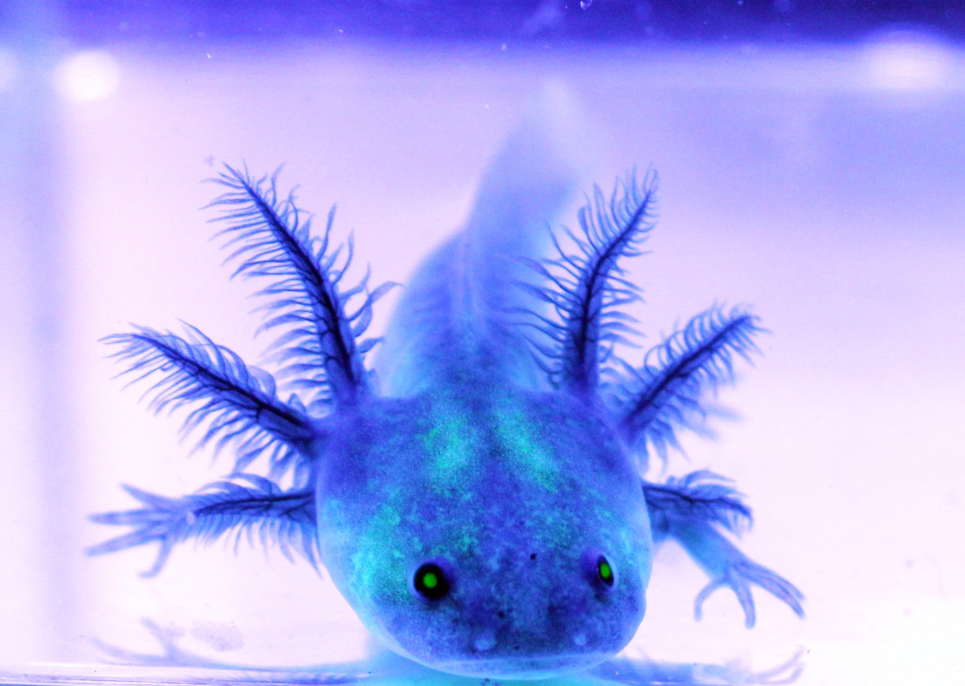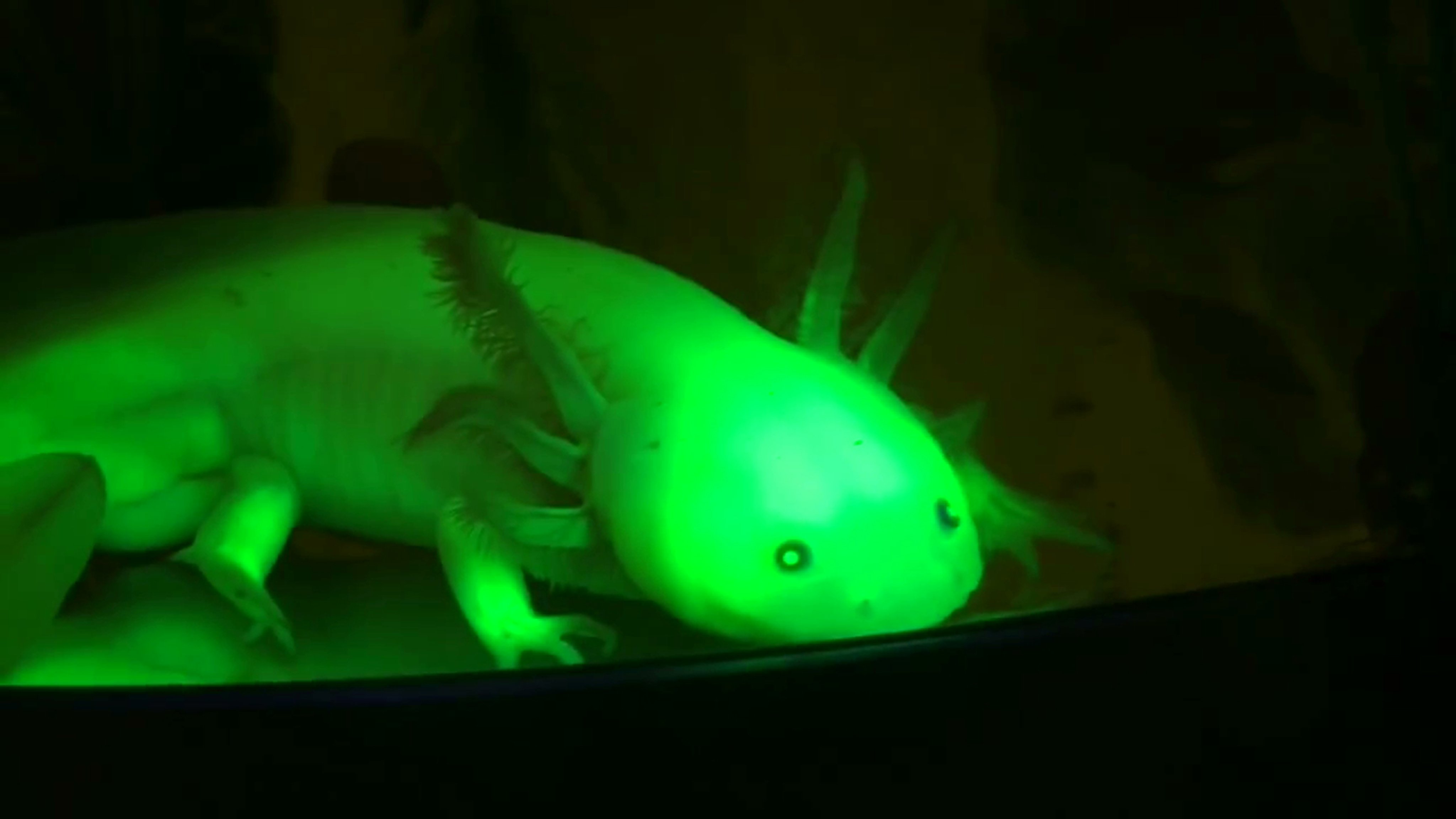 Мексиканская саламандра аксолотль прозрачный светящийся