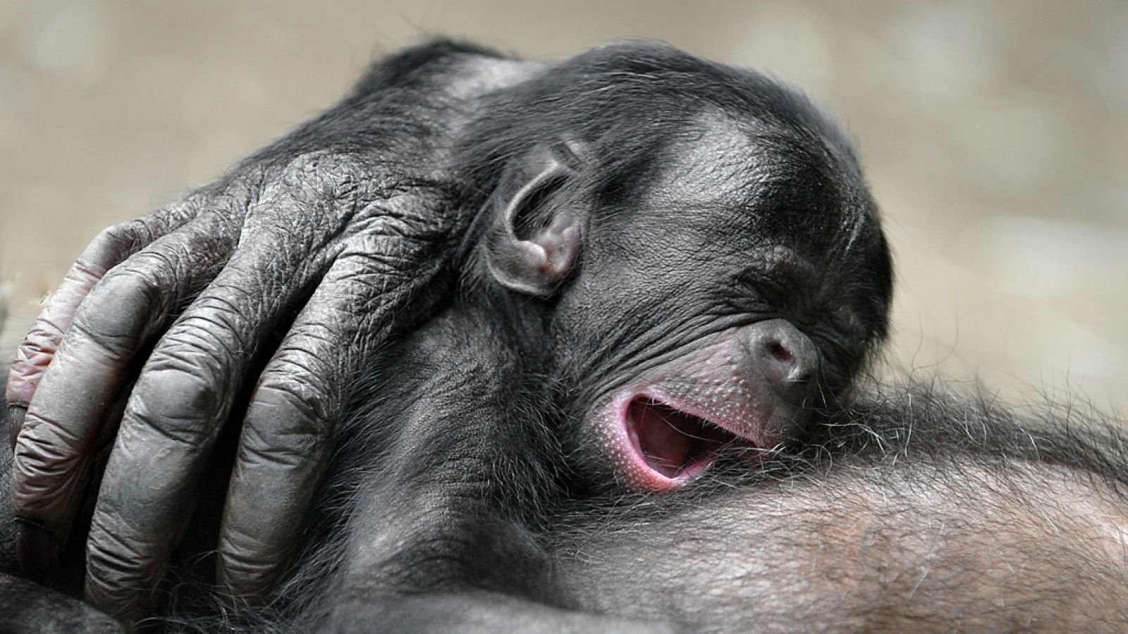 Обезьяна обнимает человека
