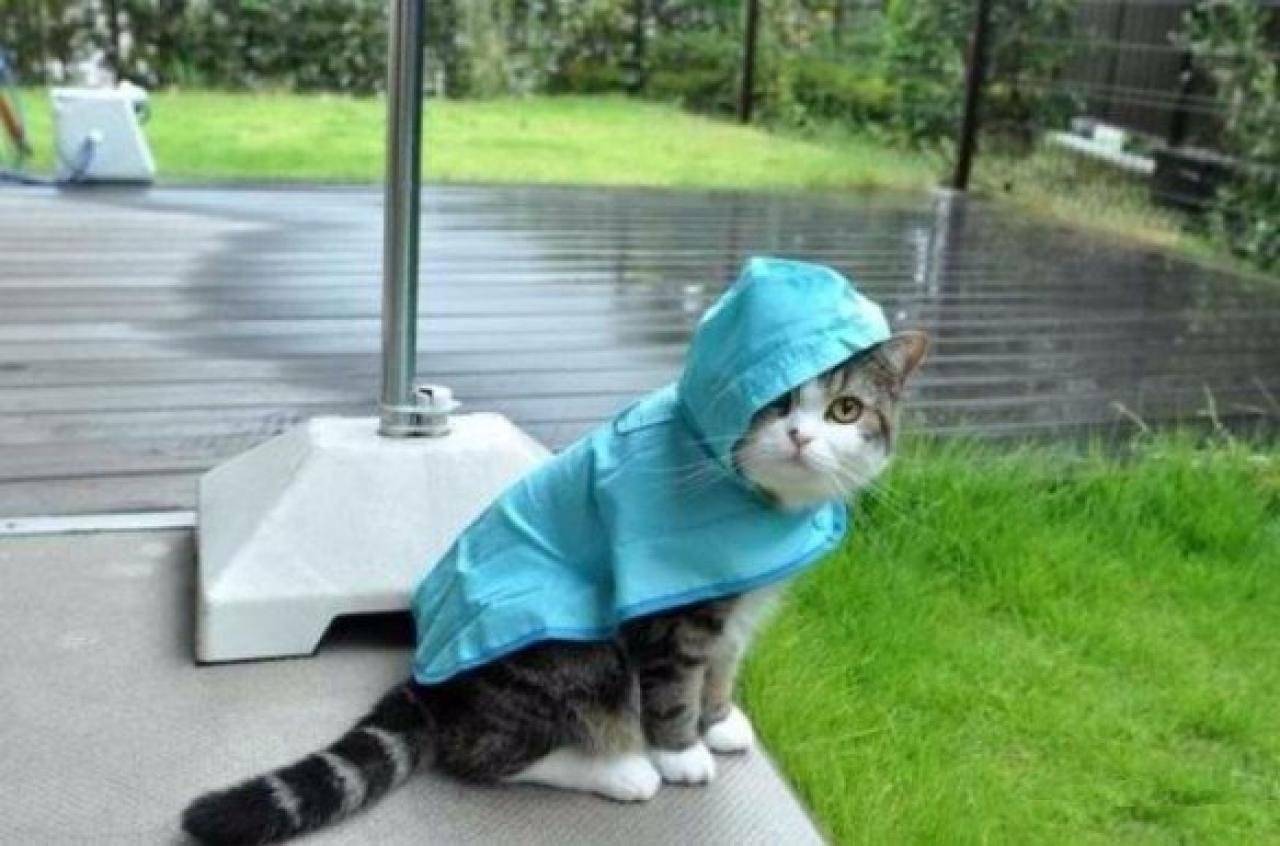 Кот в дождевике