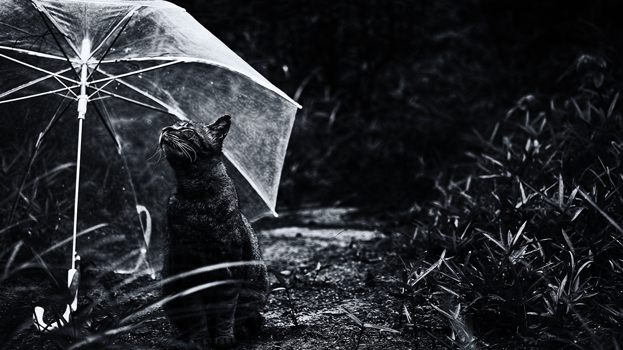 Черный кот под дождем