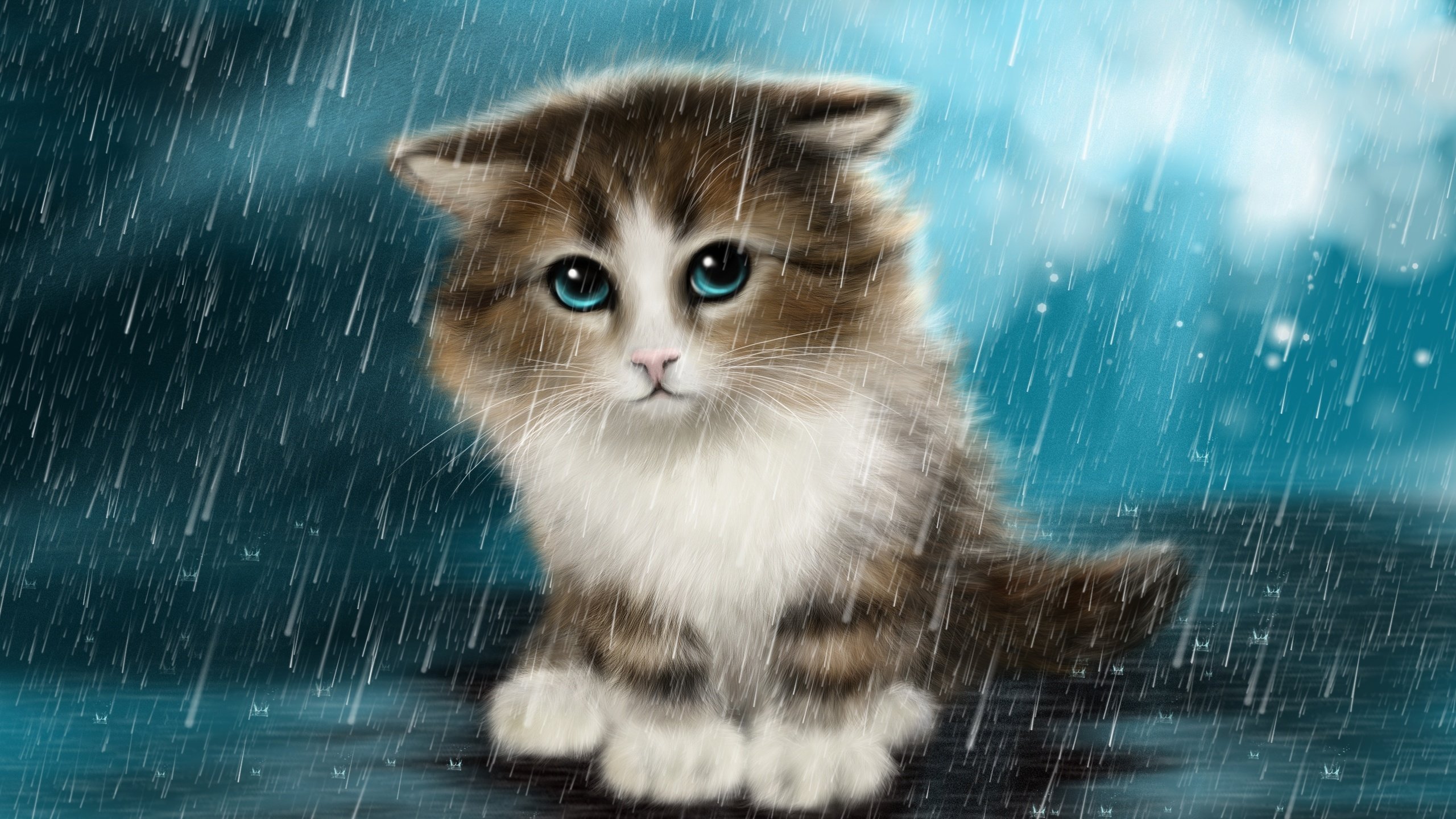 Котик под дождем