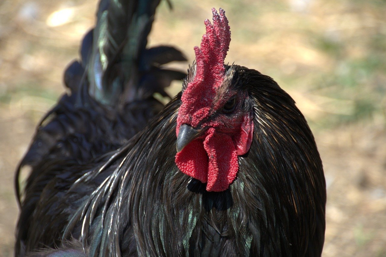 Черный петух с красным гребнем