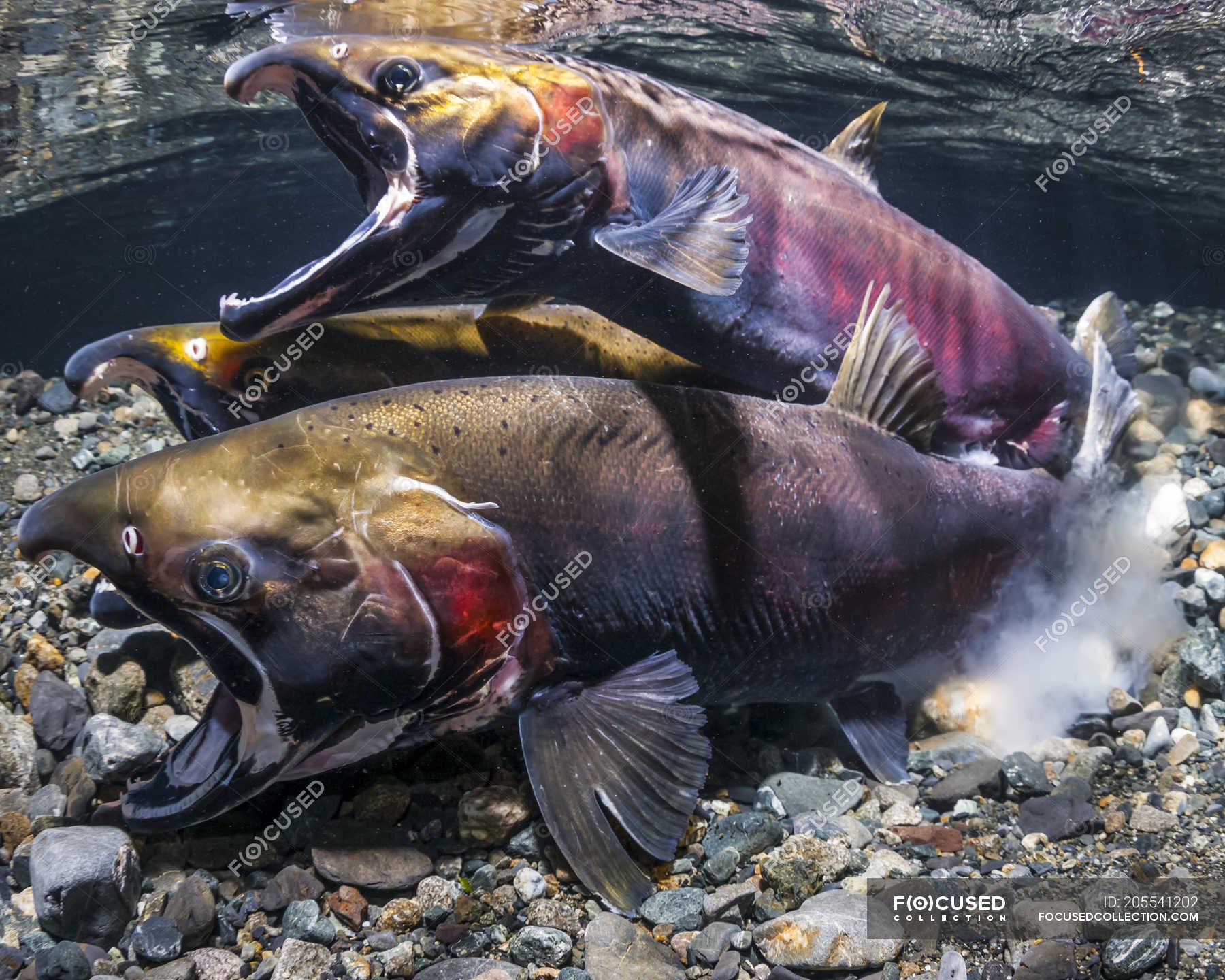 Лосось на нересте самец и самка