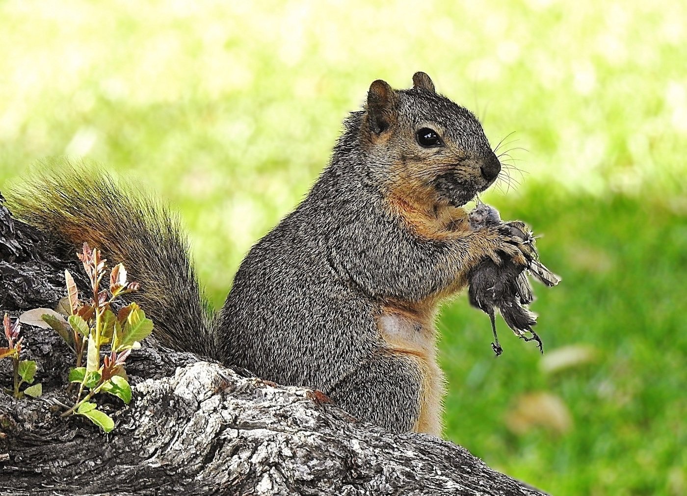 Белка ест мышь