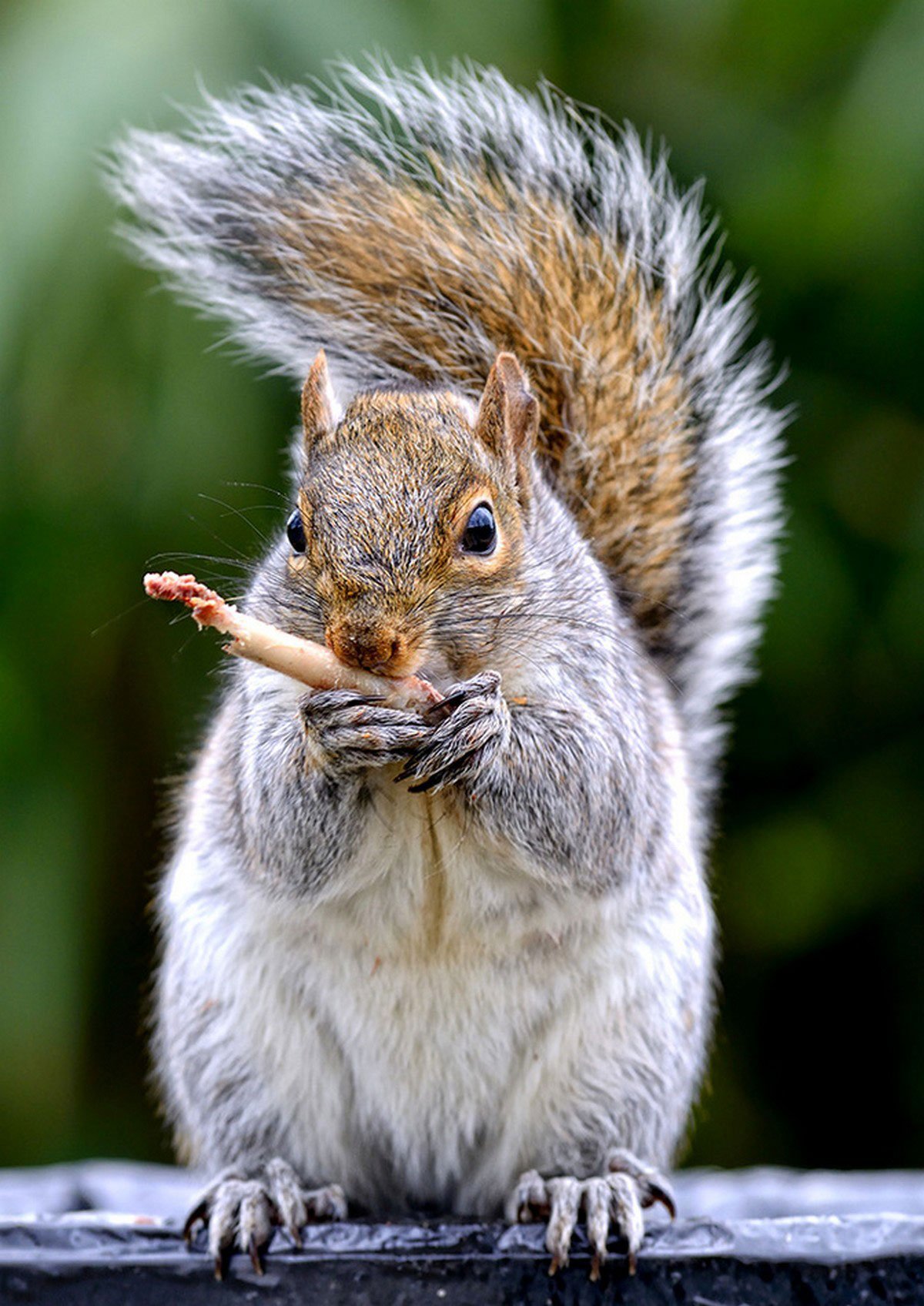 Белка ест птицу