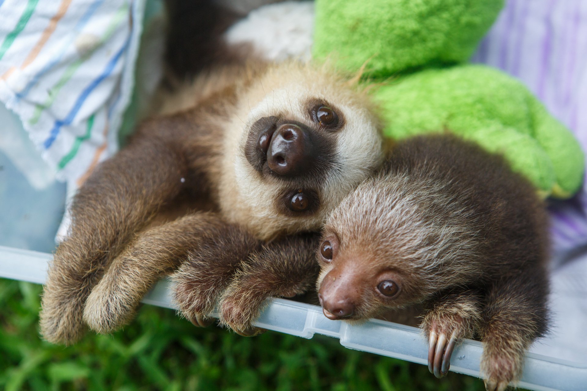 Два ленивца обнимаются