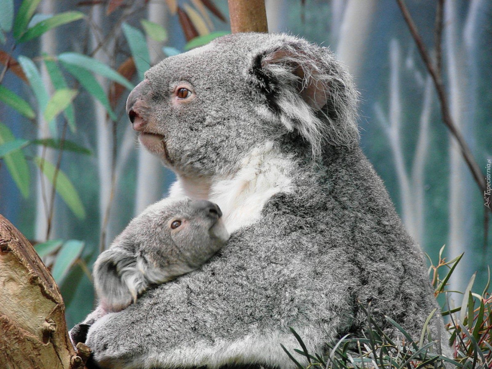 Коала обнимает дерево