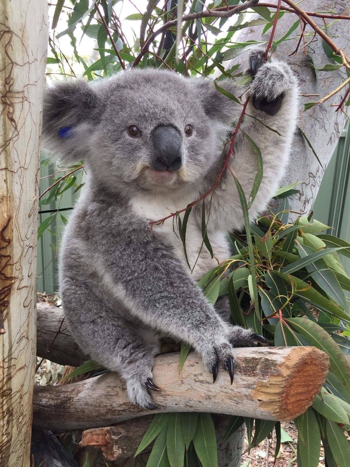 Австралийский медведь коала питается