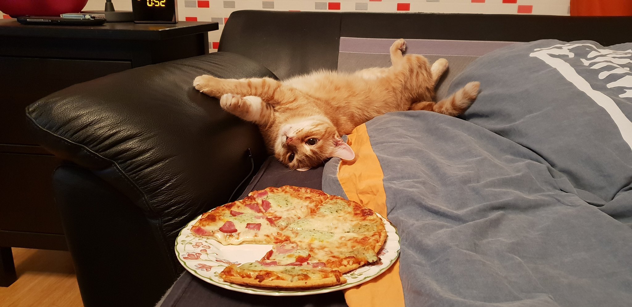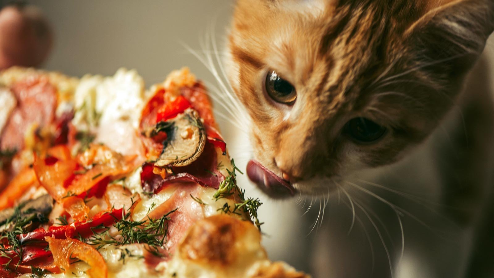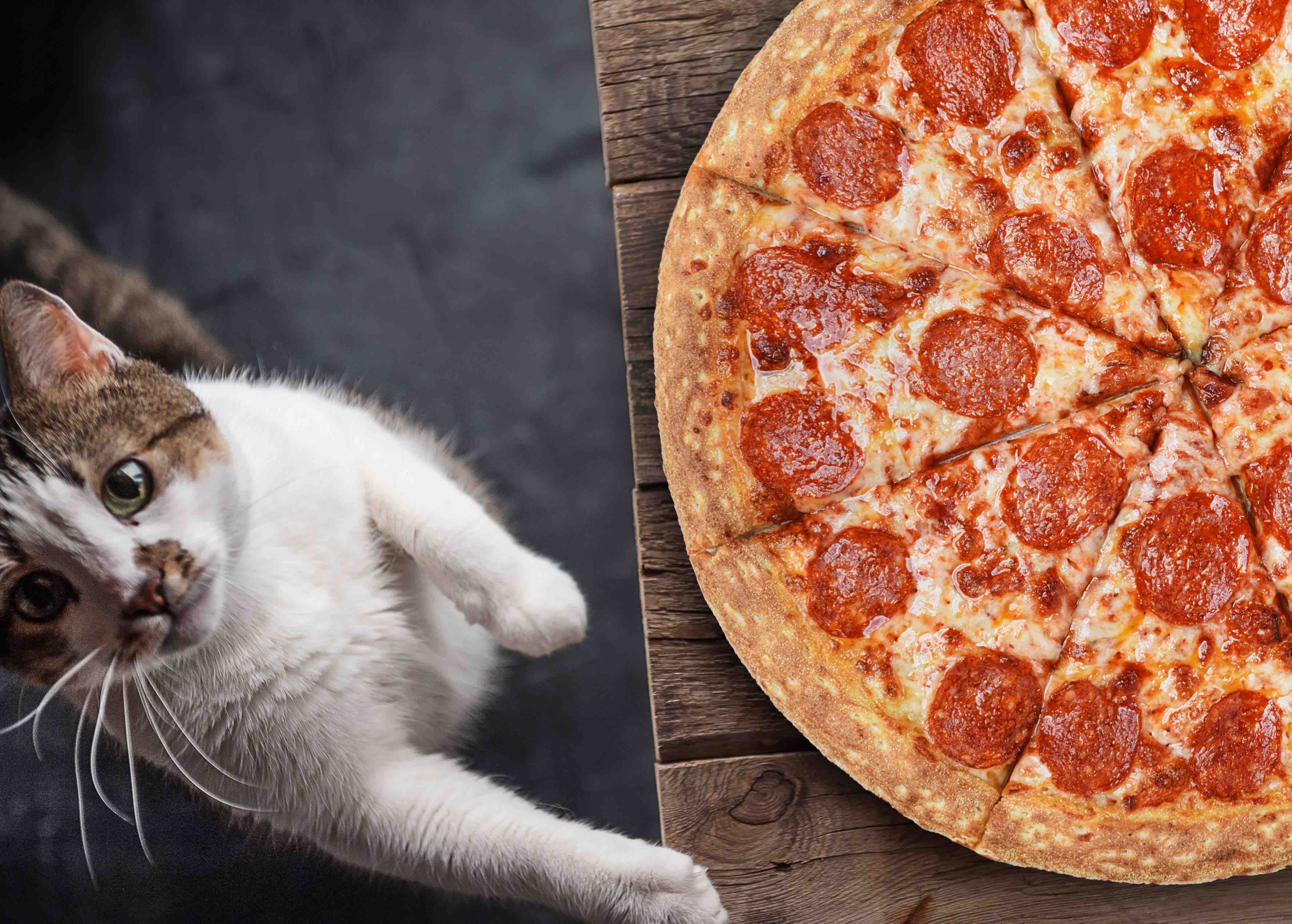 Кот на фоне пиццы