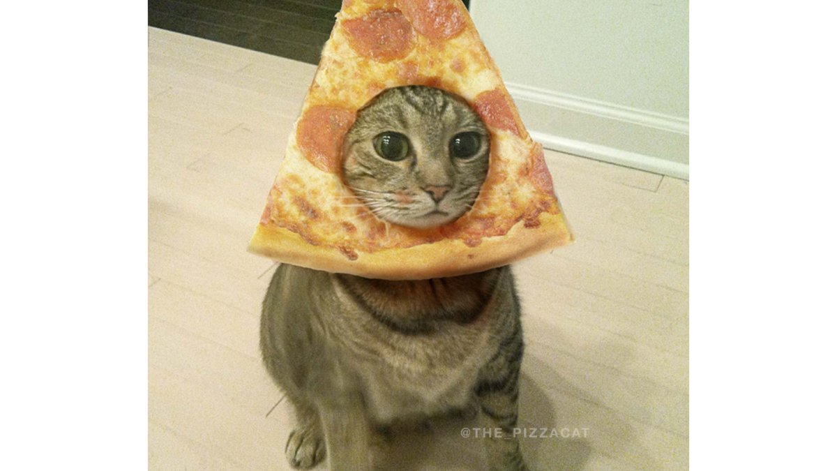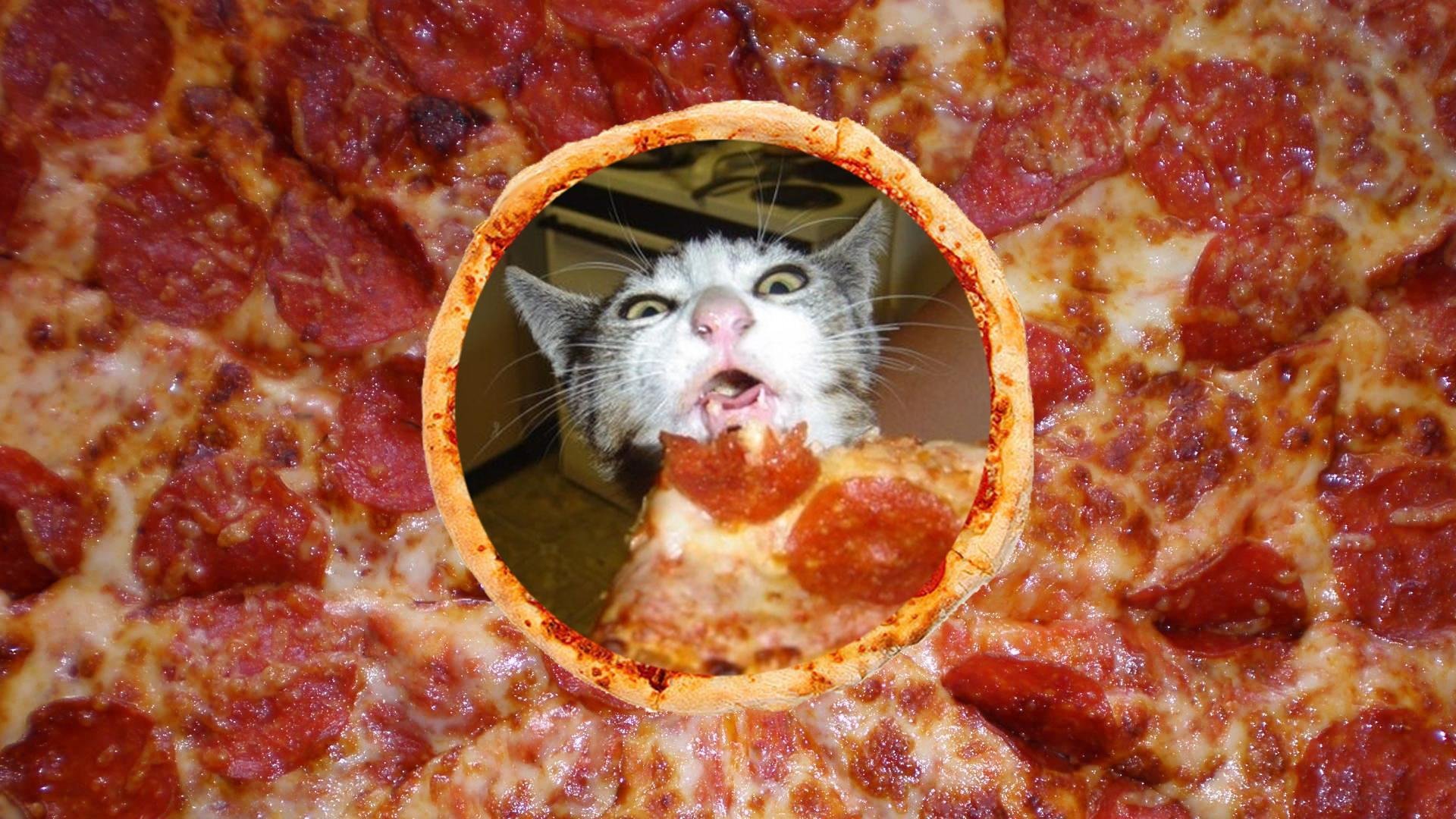 Кот и пицца Мем